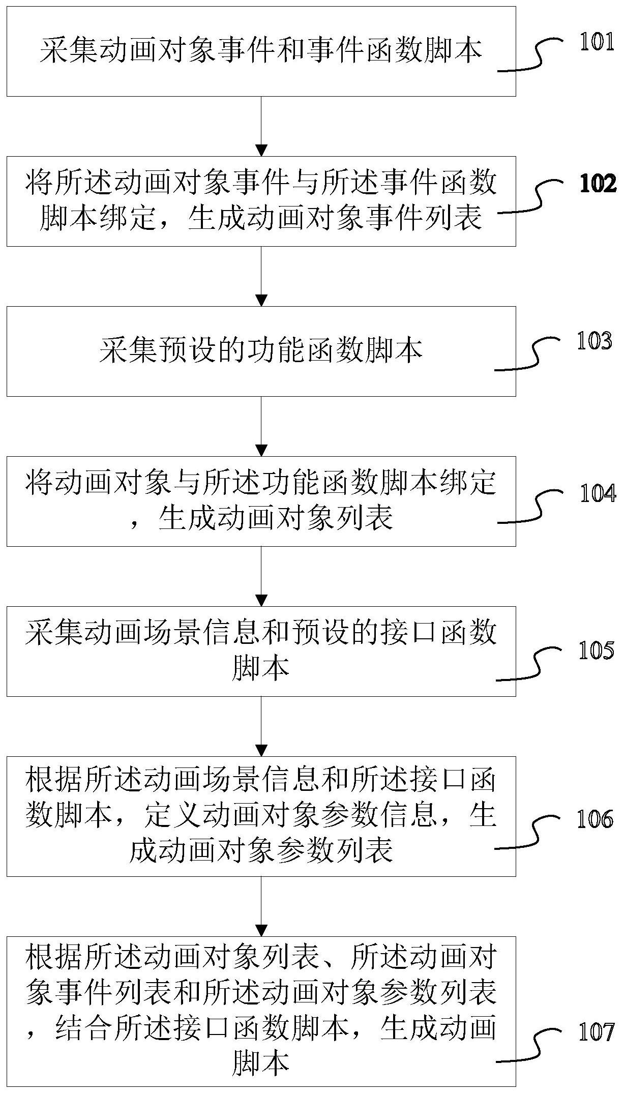 本发明公开了一种应用于课堂活动动画生成的方法及装置,包括采集动画对象事件和事件函数脚本;将所述动画对象事件与所述事件函数脚本绑定,生成动画对象事件列表;采集预设的功能函数脚本;将动画对象与所述功能函数脚本绑定,生成动画对象列表;采集动画场景信息和预设的接口函数脚本;根据所述动画场景信息和所述接口函数脚本,定义动画对象参数信息,生成动画对象参数列表;根据所述动画对象列表、所述动画对象事件列表和所述动画对象参数列表,结合所述接口函数脚本,生成动画脚本。本发明提出了一种针对课堂活动教学软件进行动画生成的应用于课堂活动动画生成的方法及装置。