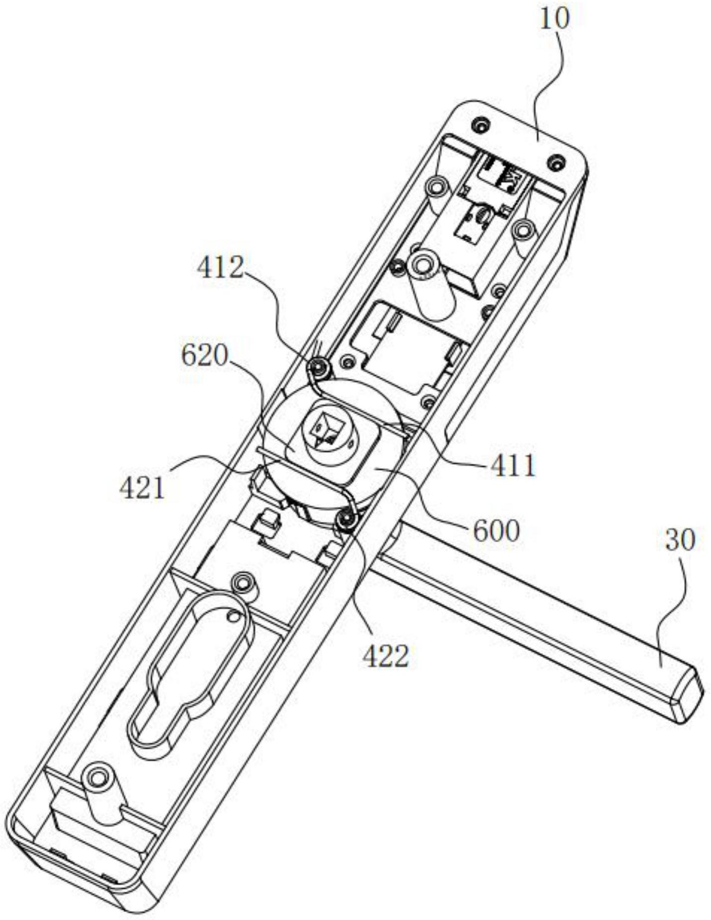 本实用新型属于锁具技术领域,公开了一种锁体结构及锁具。该锁体结构包括把手连接组件、第一复位系统、联动机构以及第二复位系统,把手连接组件包括第一转芯和第二转芯,第一复位系统包括离合器组件和扭簧组件,离合器组件连接于第一转芯,两者同步转动,扭簧组件套设于把手连接组件,第一复位系统被配置为使把手连接组件复位;联动机构连接于第二转芯和离合器组件之间,离合器组件能够与联动机构联动;第二复位系统包括间隔设置的第一弹性元件和第二弹性元件,联动机构的一部分夹设于第一弹性元件和第二弹性元件,第二复位系统被配置为使联动机构和离合器组件复位。该锁体结构能够提高复位的精确度,实现锁具的精准复位。