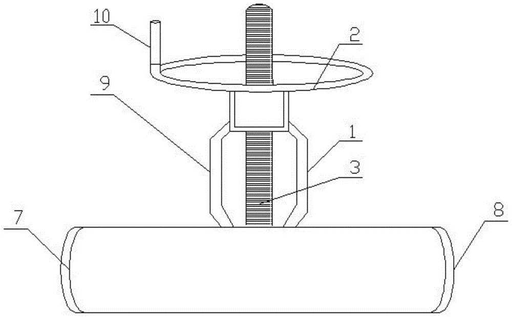本实用新型属于农业设备技术领域且公开了一种农业灌溉用节水旁通阀门,包括阀门本体、阀杆、阀芯和出水孔,所述阀门本体上部设有转动轮,所述转动轮呈圆形状,且转动轮上设有摇把,所述摇把位于转动轮一侧,所述转动轮中心设有阀杆,所述阀杆垂直向下与底部设有的阀芯连接,所述阀芯呈圆形状且阀芯上设有出水孔,所述阀芯安装在阀腔内,所述阀腔一侧设有进水口另一侧设有出水口,所述出水口与进水口上设有卡箍,所述出水孔设有四个分为两组且大小不同。本实用新型通过不同大小的出水孔,能够便于使用者根据使用需要进行调节,避免了在农作物在灌溉过程中大量水资源的浪费,同时,满足了使用者的不同需求,有利于提高农业灌溉的工作效率。