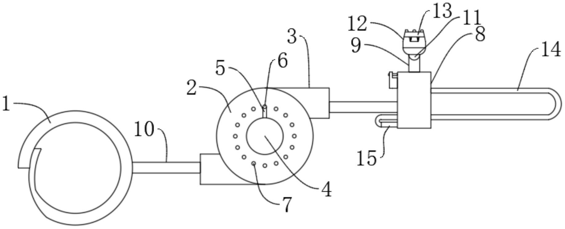 本实用新型涉及安全工具技术领域,且公开了一种新型工具防坠落保险手环;本新型工具防坠落保险手环包括收线盒,所述收线盒左右侧均固定连接有出线固定筒,所述收线盒内腔转动连接有对称设置的转轮,两个转轮外壁均固定连接有回卷弹簧,两个回卷弹簧端部均固定连接有第二连接线,左侧的第二连接线左端固定连接有固定手环,本实用新型可安装多种工具,且将操作者的手腕与工具进行连接,能有效的避免工具坠落的事件发生,以避免高空作业事故的发生,且可有效避免第二连接线伸长过多,造成收回时打结缠绕,影响使用,且在工具坠落时,由于回卷弹簧的回弹力,也保证了工具不会来回晃动,有效保护了航空器的外壁。