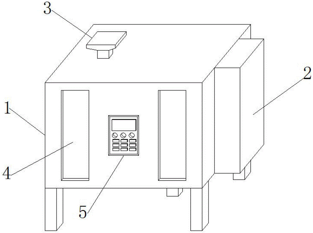 本实用新型属于瓜子加工技术领域,具体涉及一种瓜子加工用高效烘干装置,包括烘干箱、开设在烘干箱的顶端一侧的进料口和开设在烘干箱的底端另一侧的出料口,所述烘干箱内固设有两组横向的隔板,所述隔板将烘干箱分隔为三个大小相同的烘干室,所述烘干室的内部均固设有横向的传送带,两组所述隔板上均开设有导料口,所述烘干箱的一侧固设有吹风箱,所述吹风箱的底端安装有风机,所述风机的输出端连接有垂直方向的送风管,所述送风管上连接有三组横管,三组所述横管分别延伸至不同的烘干室中,克服了现有技术的不足,瓜子均匀进料、进行分级烘干,方便控制烘干的温度,使瓜子均匀的受热烘干,提高了瓜子的烘干效率,提升了瓜子的品质。