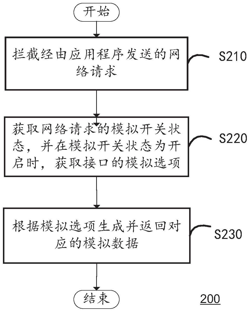 本发明公开了一种应用程序测试方法,其中,应用程序运行在移动终端中,该方法适于在移动终端中执行,包括:拦截经由应用程序发送的网络请求;获取网络请求的模拟开关状态,并在模拟开关状态为开启时,获取接口的模拟选项;以及根据模拟选项生成并返回对应的模拟数据。该方案由应用程序自身提供模拟数据,无需对开发机和网络的依赖,能够降低测试成本。