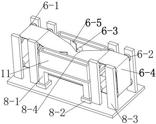 本发明公开了一种薯片油炸机,现有的薯片油炸机对于油炸时间、温度的无法精确控制,且使用者需要与食用油靠近才能操作。本发明包括传输机构、油炸机构和加热系统。油炸机构包括油槽、支撑架、隔热底座、安装架和挡板。传输机构包括入口轮轴组、出口轮轴组、转向带轮、传送带、导向板和电机。加热系统包括升温第一集流管、第二集流管、第一管道、第二管道、换热组件、传热组件、导热油箱和液压泵。换热组件包括第一汇总出口管、换热器和第一汇总入口管。本发明通过控制传送带的速度,能够准确带油炸薯条经过油槽的时间,从而精确控制油炸时长,保证油炸质量,且能够保证了所有薯片成品品质的一致性。