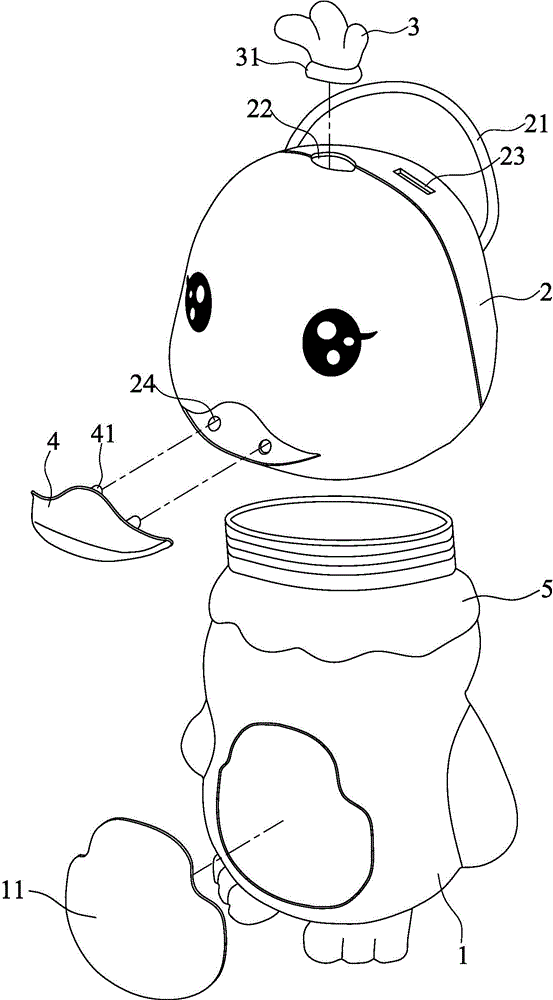 本实用新型公开一种多功能果冻罐,由仿动物躯体造型的罐身和仿动物头部造型的罐盖组合,罐身形成容纳食品的内腔,罐身的前面贴有仿动物腹部的装饰片,罐身上方通过螺纹连接盖设罐盖,罐身下方套有装饰脖套,罐盖的前面借助卡扣方式活动安装仿动物嘴部的嘴配件,罐盖的顶部插置安装仿动物头冠的顶冠配件,罐盖上还开设投币口。本实用新型结构简单,可根据需要变化造型设计,还可以增加包装罐附加功能。