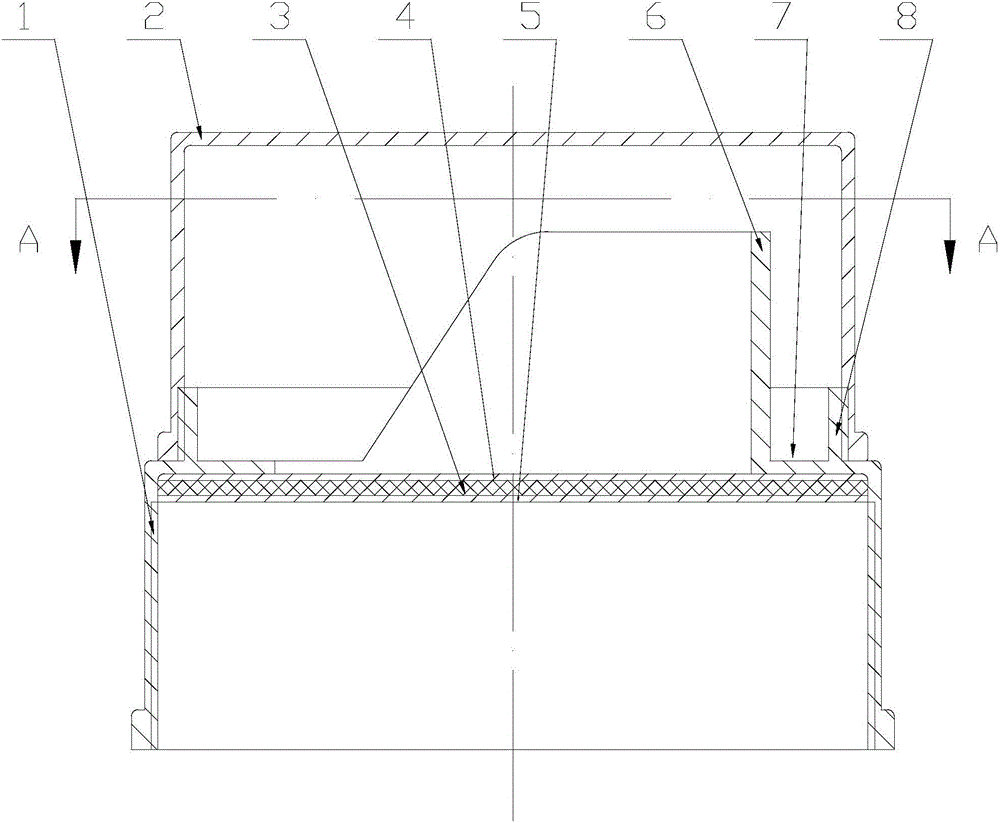 本实用新型公开的食用油瓶盖,涉及液体产品包装技术领域,包括盖体座和盖体(2),所述盖体(2)旋装在盖体座的上部;所述盖体座是由油瓶连接套(1)、盖体连接套(8)以及回油槽底(7)构成,所述油瓶连接套(1)的内壁带有与油瓶瓶口配合的内螺纹,所述盖体连接套(8)的外壁带有与盖体(2)配合的外螺纹,所述回油槽底(7)的中间开有出油孔,在所述出油孔的边缘还设置有大半圈圆筒状的导油舌槽(6);在回油槽底(7)的另一面还设置有密封垫(3)。具有封装简单、制造成本较低、使用方便等特点,既可与食用油瓶配套使用,也可与其它液体类日用化工产品的瓶体配套使用。