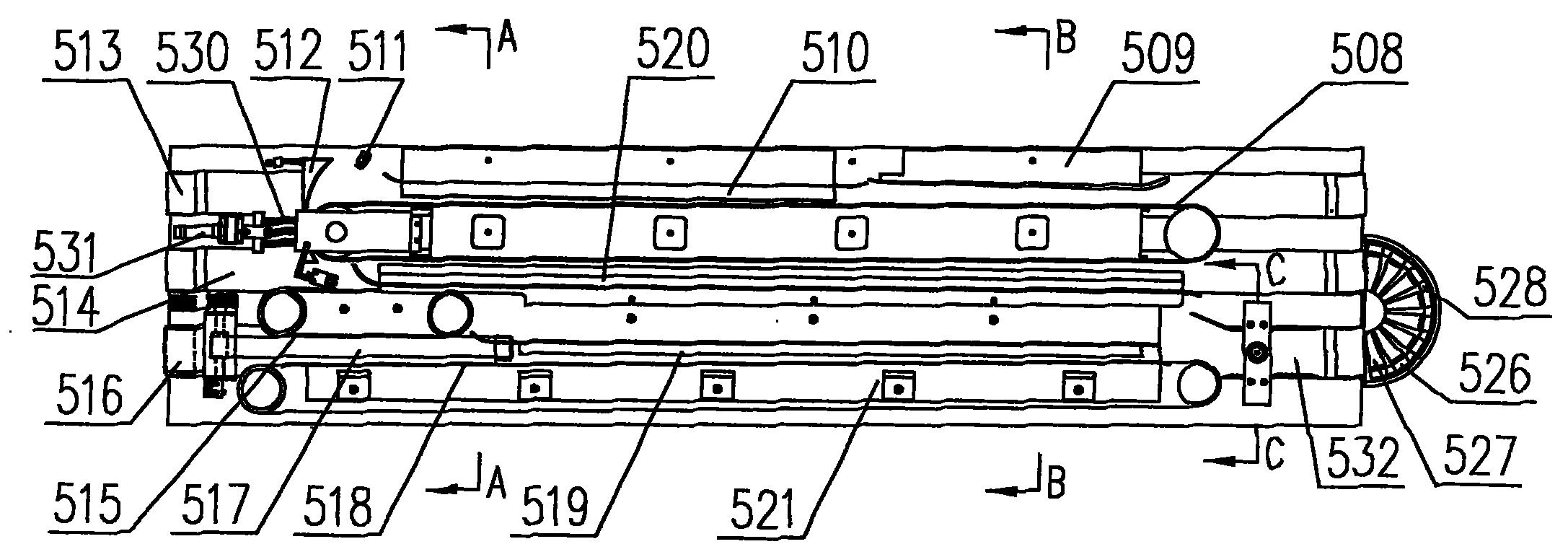 本发明涉及一种食品加工机械,尤其涉及一种隧道成型机,在机架上自前至后依次排布有一次预成型装置部、二次预成型装置部、一次成型装置部、二次成型装置部,在二次预成型装置部与一次成型装置部之间、在一次成型装置部和二次成型装置部之间分别设有压型装置,成型过程各功能部都是模拟手工搓动成型,使馒头内部结构不被撕裂破坏,保持面筋网络的完整均一,成型率较高,同时提高了面坯外观质量。