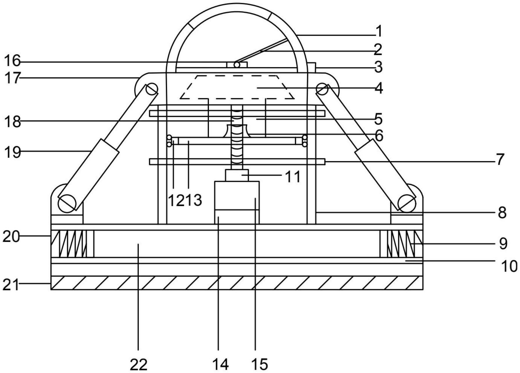 本实用新型提供一种用于蔬菜种植棚的风机,涉及种植棚技术领域,包括框体与风机体,所述框体两侧壁设有夹板,所述夹板两侧之间设有弹簧,所述弹簧间设有风机体,所述框体顶部两侧设有旋转轴,所述旋转轴上设有伸缩杆,所述伸缩杆一端设有所述旋转轴,所述伸缩杆之间设有顶板;所述夹板顶部设有垫块,所述垫块两侧设有侧板,所述侧板两端套设有卡板,所述垫块顶部设有电机,所述电机顶部设有电机轴,所述电机轴顶部设有螺旋杆,所述侧板两侧壁设有滚轮,所述滚轮之间设有升降板,所述升降板顶部设有套圈,所述升降板一侧设有升降块,所述升降块顶部设有移动块,所述顶板两侧设有开口,所述移动块设在所述开口处。本实用新型结构稳定,调节效果好。