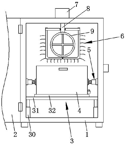 本实用新型公开了一种新型奶油打发机,包括柜体、支撑装置、桶体、旋转电机和搅拌轴,所述柜体的一侧通过合页连接有柜门,所述柜体的内部设置有支撑装置,所述支撑装置的顶端设置有顶部开口的桶体,所述桶体的外壁一体成型有两组把手,所述桶体的侧壁固定有排水阀和两组卡件,所述柜体的顶壁的中央固定有旋转电机,所述旋转电机的顶壁钻设有与旋转电机的输出轴适配的通孔,所述旋转电机的输出轴通过联轴器与柜体内的搅拌轴连接,所述搅拌轴的底端固定有搅拌杆,所述搅拌杆为环形管结构,所述搅拌轴的侧壁固定有两组清理件。该新型奶油打发机,不仅便于对奶油进行打发,而且能够对桶体进行固定和清理。