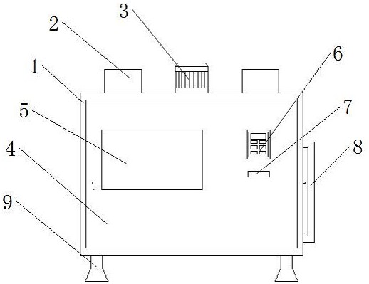 本实用新型公开了一种水产的快速解冻装置,涉及水产解冻技术领域。本实用新型包括装置主体,装置主体的外表面设置有装置门,装置门的外表面分别设置有观察窗、操作面板和把手,装置主体的底部设置有支腿,装置主体的顶部两侧均设置有热风机,装置主体的顶部中间设置有电机,本实用新型通过设置电机、螺纹杆、螺纹套、固定杆、连接杆和破冰球,工作人员将水和水产放入解冻槽后,工作人员启动电机,电机带动螺纹杆转动,螺纹杆带动螺纹套上下移动和转动,从而带动固定杆上下移动和转动,从而使得破冰球可以将包裹水产的冰块击碎,减少了解冻所需的时间,同时对加热中的水进行搅拌,提高了解冻的效率。