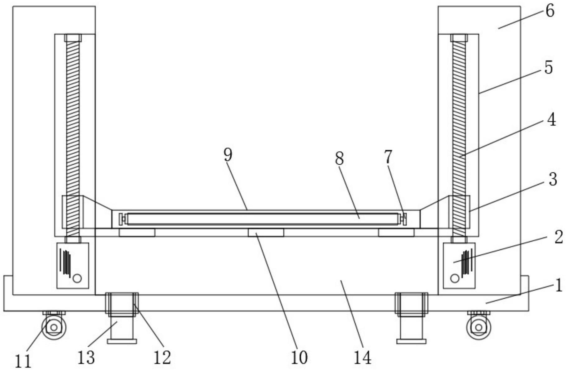 本实用新型公开了一种月饼用装箱台,包括:支撑底架和侧支撑架;所述侧支撑架设置有两个,两个所述侧支撑架位于支撑底架的两侧,两个所述侧支撑架相对的一侧设置有升降机构,所述升降机构的一侧通过连接架连接有月饼装箱平台;所述月饼装箱平台的一侧设置有固定支架和移动支架,所述月饼装箱平台的一侧与移动支架的对应位置处设置有支架移动槽,所述移动支架通过滑块与支架移动槽滑动连接,所述支架移动槽的内部设置有防滑橡胶垫,所述固定支架和移动支架相对的一侧通过定位圆杆安装有保鲜膜卷;升降机构可带动月饼装箱平台上的月饼调节到合适高度,便于对装箱台上的月饼进行装箱,并保证了月饼在装箱台上的清洁卫生。
