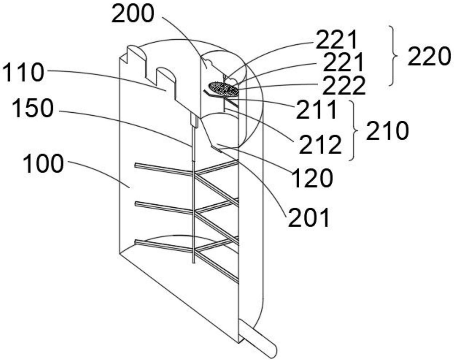 本实用新型专利保护一种便于黑枸杞浆液饮品浸提的装置。一种便于黑枸杞浆液饮品浸提的装置包括:浸提罐、搅拌组件及按压部,浸提罐顶部设置有进料口、进水口及设置在底部的出料口,进料口密封连接粉碎设备,出料口密封连接过滤设备;搅拌组件包括旋转单元及设置在旋转单元上的搅拌单元,搅拌单元至少设置2片搅拌叶,且搅拌叶向上弯折;按压部能够沿旋转单元上下滑动。搅拌叶旋转时呈现倒圆台形,分布在液面上的黑枸杞粉跟随混合液向旋转单元处汇集,按压部向下按压,将汇聚在旋转单元处的黑枸杞粉按压到混合液内。通过改变搅拌叶的形状与设置按压部,解决黑枸杞粉漂浮在液面上无法搅拌的问题,同时使浸提罐内的混合液搅拌的更为均匀。