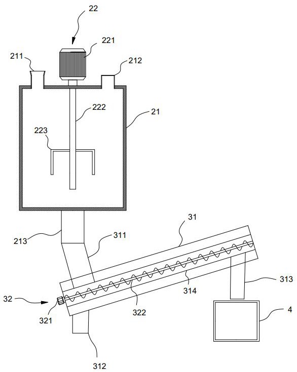 本实用新型属于醪糟生产技术领域。基于现有的人工洗米无法满足醪糟工业化生产的要求,本实用新型公开了一种醪糟生产用的洗米装置,包括洗米组件,具有洗米箱;搅拌机构,安装在所述洗米箱上;分离组件,和所述洗米箱连接;其中,所述分离组件包括分离管道,和所述洗米箱连接,与水平方向呈夹角设置;所述分离管道内部套设有分离网;螺旋绞龙,具有螺杆,所述螺杆设置在所述分离网中;其中,所述分离管道临近最高端设置有第二分离出口,所述第二分离出口和所述分离网连通,用于排米;所述分离管道临近最底端设置有第一分离出口,用于排水。该洗米装置解决了人工洗米耗时耗力的问题,清洗效果好,清洗效率高。