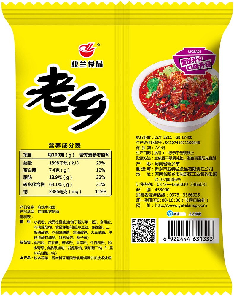 包装袋(亚兰食品老乡麻辣牛肉面)