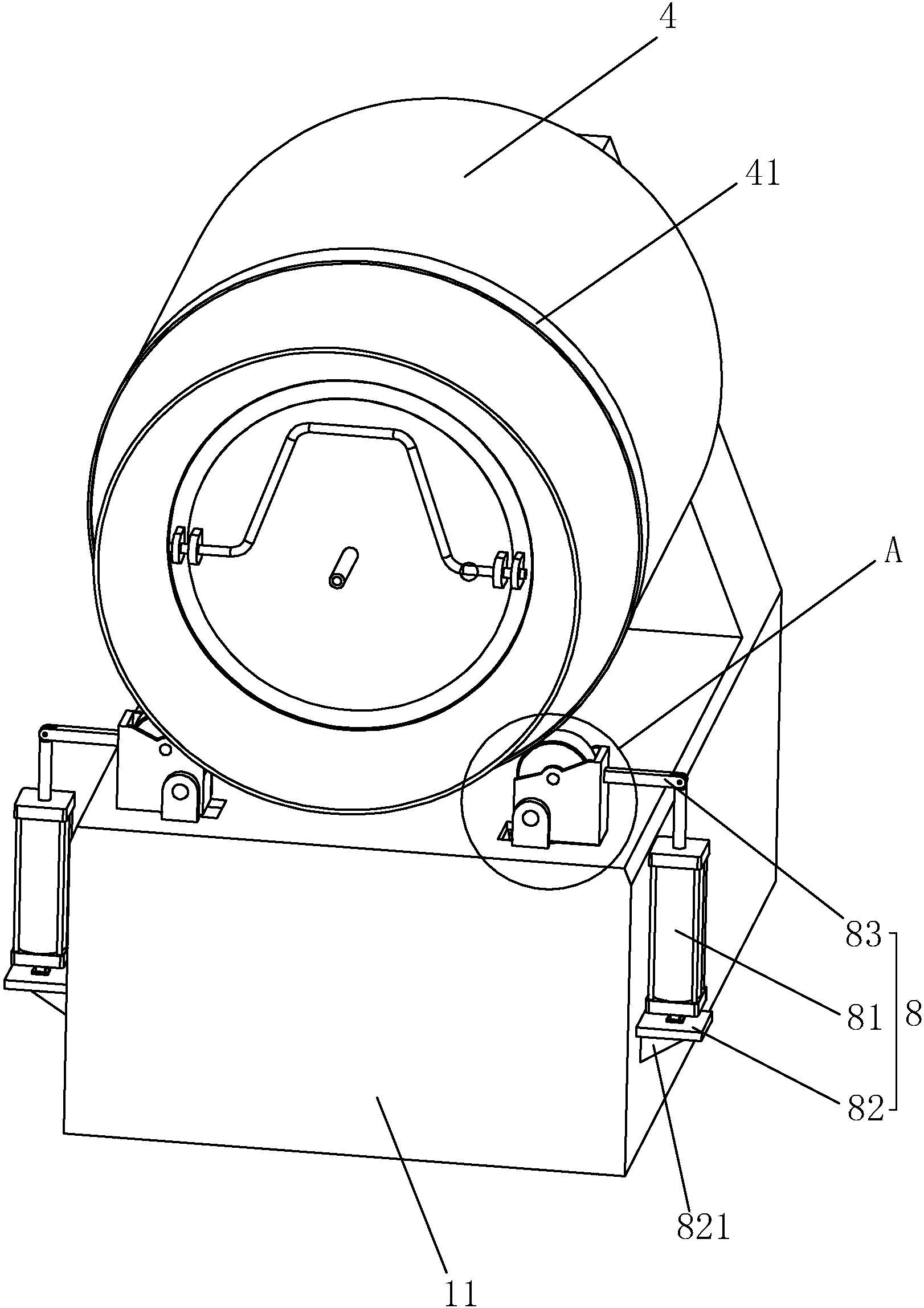 本实用新型公开了一种真空滚揉机,其技术方案要点是包括机架、滚筒、传动机构以及驱动电机,所述滚筒横放在所述机架上,所述驱动电机驱动所述传动机构带动所述滚筒做旋转运动,述滚筒上远离所述传动机构的一端的两侧对称设置有支撑组件,所述支撑组件转动连接在所述机架上,所述机架上固定连接有用于驱动所述支撑组件转动使得所述支撑组件与所述滚的外壁相抵接的驱动机构,达到了较为有效的保持滚筒转动稳定性的效果。