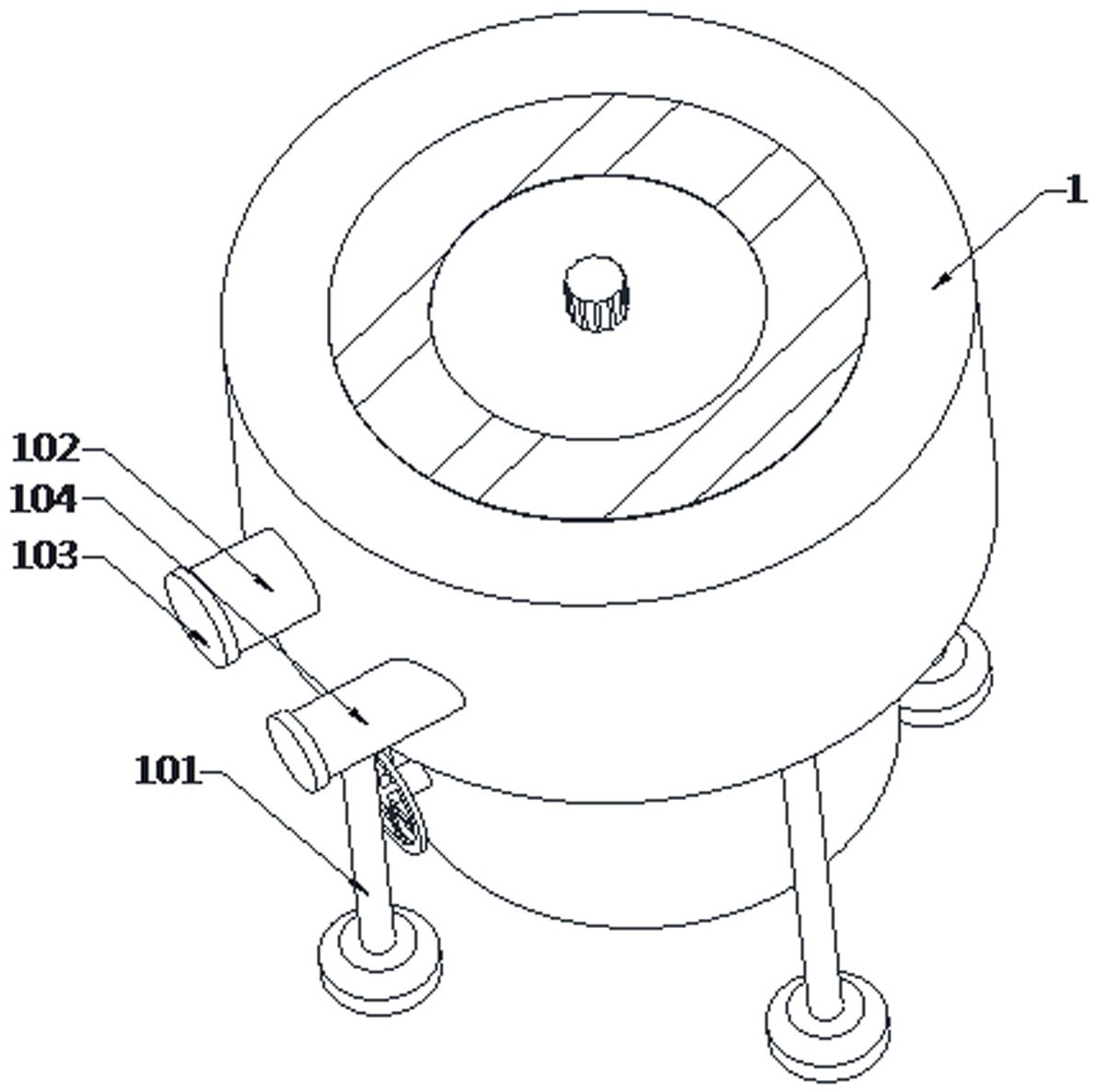 本实用新型公开了一种番茄红素低温结晶装置,涉及化工技术领域,包括外壳,外壳底部固定连接有支撑杆,支撑杆共设有四个,外壳外壁固定连接有第一进料管,第一进料管上设置有套管,外壳外壁固定连接有第二进料管,第一进料管上固定连接有降温盒,降温盒呈圆形,降温盒内壁固定连接有外螺纹,降温盒顶部设置有冷却机构,冷却机构包括有转杆以及弧形板,转杆与降温盒活动连接,转杆外壁固定连接有连接杆,连接杆底部固定连接有刮板,刮板与弧形板相配合,弧形板与第二进料管固定连接,弧形板与降温盒固定连接,转杆顶部固定连接有把手。本实用新型其优点在于便于对番茄红素中的杂质进行降温过滤,提高结晶纯化效果。