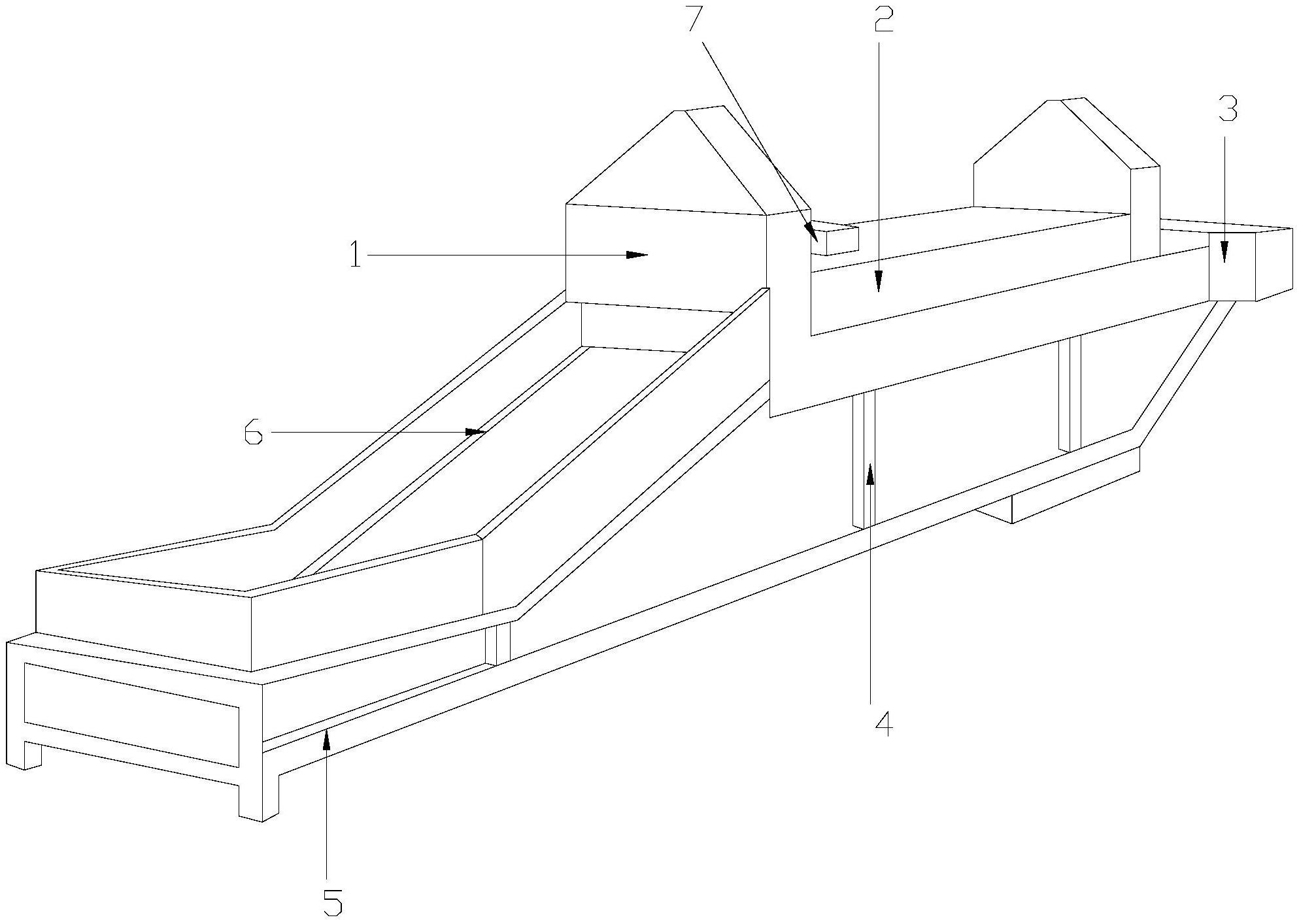 本实用新型公开了一种用于蔬菜加工的蒸汽烫料装置,其结构包括挡块、烫料箱、接电箱、支撑台、底座、输送带、辅助散热块,本实用新型一种用于蔬菜加工的蒸汽烫料装置,在烫料箱内的热气过多的时候,其辅助散热块外壳底部上的热吸附块会对热量进行吸附,使受压滑块下方的热膨胀介质受热膨胀,从而带动排气连接管推开挡板上的弹性连接块,使气流能够经由排气口排出,让烫料箱内的热气能够经由外壳上的排气口排出进行散热,通过改进设备的结构,使设备在进行使用的时候,能够在烫料箱内热气过多的时候,对其内堆积的部分蒸汽进行排放,避免烫料箱过热造成蔬菜过熟的现象。