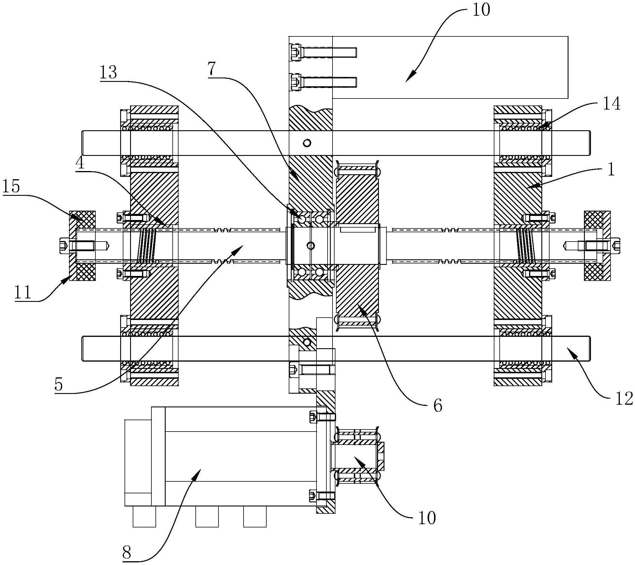 本实用新型公开了一种丝杆四连杆举升机构,包括左右对称设置的左右连杆座和上下对称设置的上下连杆座,相邻的左右连杆座与上下连杆座之间通过支撑连杆转动连接,形成闭合的可活动多边形框架架构,两侧的左右连杆座内分别固定有开口相对的螺母套筒,丝杆的两端通过螺纹结构拧在各侧的螺母套筒内,丝杆转动使两侧的螺母套筒同时向内或向外移动,丝杆的中间部位光滑并固定有被动带轮,被动带轮的一侧丝杆外围套有可自由转动的中间固定座,中间固定座的一端固定有驱动电机,驱动电机的主动带轮轮通过传动带与被动带轮传动连接。本实用新型在停车高度位置可以承受较大的向下冲击载荷,升降更迅速可靠。