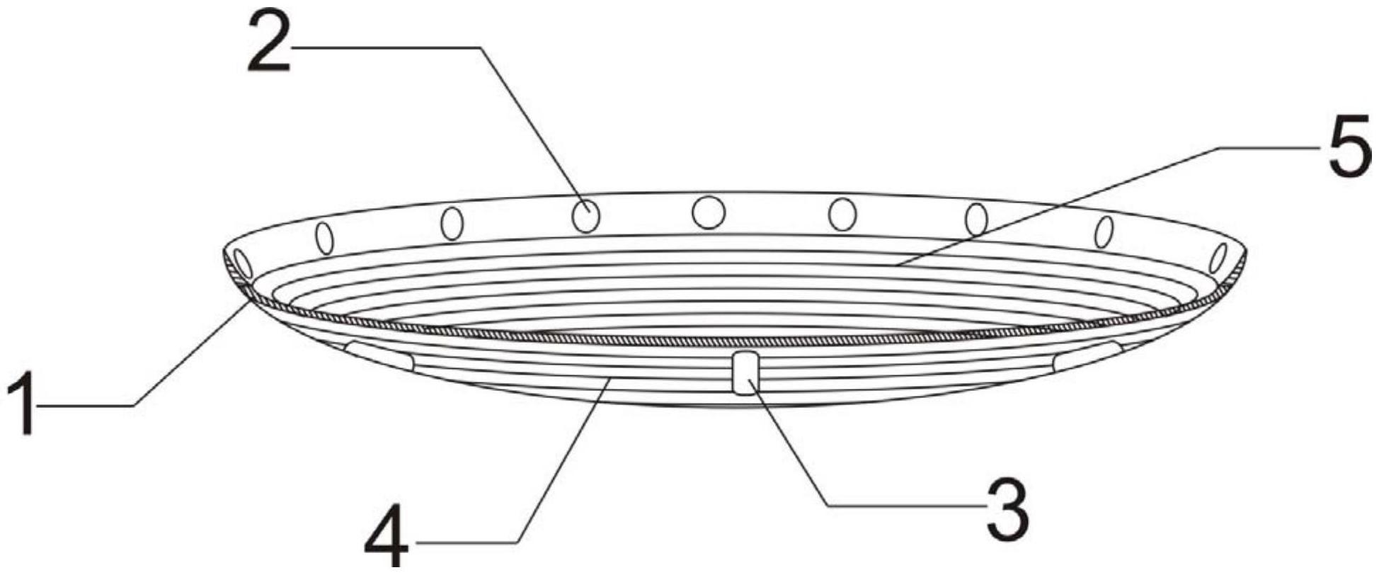 一种用于锅具外底部一体卡槽式防滑构件,包括构件本体,所述的构件本体内壁的上侧边缘设置固定凹槽,所述的构件本体的外壁沿轴心均匀设置固定卡槽,所述的固定卡槽为长方形内陷结构;所述的构件本体的外壁设置同心圆结构的受热槽;本实用新型的有益效果在于:本构件通过固定凹槽和固定卡槽的设置,能够实现本构件与固体的方便固定组合,固定卡槽能够实现对使用炉具的锅架支撑脚的卡扣固定,从而实现烹饪过程中,对锅具的固定;这样不仅能够保证在进行食物烹饪过程中对锅具的固定,而且在进行锅具清理过程中,能够有效的防止直接对锅具的底部进行清理,本构件为防腐防锈材质材质,能够在不直接接触食物的同时对锅具底部进行有效的保护。