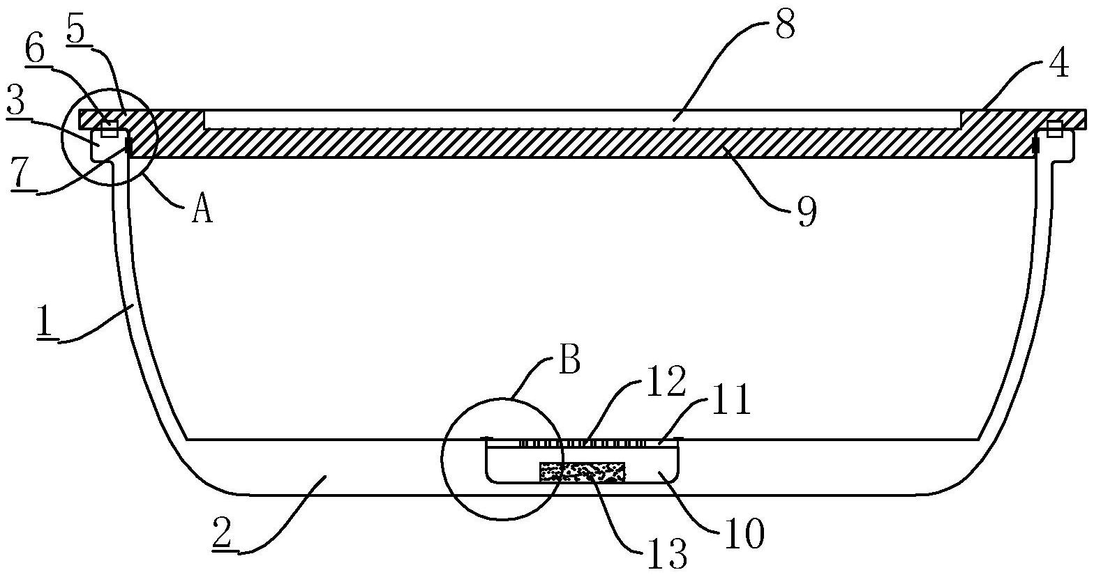 本实用新型涉及密封盒技术领域,尤其是一种带有竹材密封盖的密封盒,包括储存盒,所述储存盒底部固定安装有一体结构的盒底,所述储存盒上端外侧固定安装有一体结构的边沿,所述储存盒上端盖设有盒盖,所述盒盖上端面开设有凹槽,所述盒盖下端面固定安装有一体结构的盖底,所述盖底表面的高度低于所述边沿表面的高度,所述盒盖外侧固定安装有一体结构的固定凸缘,所述固定凸缘贴合设置于所述边沿上方,该密封盒使用效果好,值得推广。