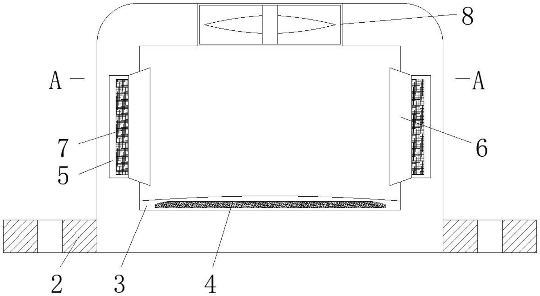 本实用新型公开了一种用于陶瓷花纸印刷机的油墨干燥装置,属于油墨干燥装置领域,一种用于陶瓷花纸印刷机的油墨干燥装置,包括固定箱,固定箱的侧壁固定安装有固定板,固定箱内壁的底端固定安装有中空管,中空管的内壁装填有铜铝粉,固定箱开设有多个安装槽,安装槽的内壁固定安装有导热铜管,导热铜管的侧壁固定安装有加热板,固定箱的侧壁开设有多个设置的通风口,通风口的内壁固定安装有风扇,它便于通过陶瓷花纸传输带,并方便对输送带上的陶瓷花纸快速干燥,快速运输陶瓷花纸而加快效率,并降低其油墨气味,同时通过中空管和铁粉便于储存热量,防止热量快速消散,且该装置结构简单,便于使用。