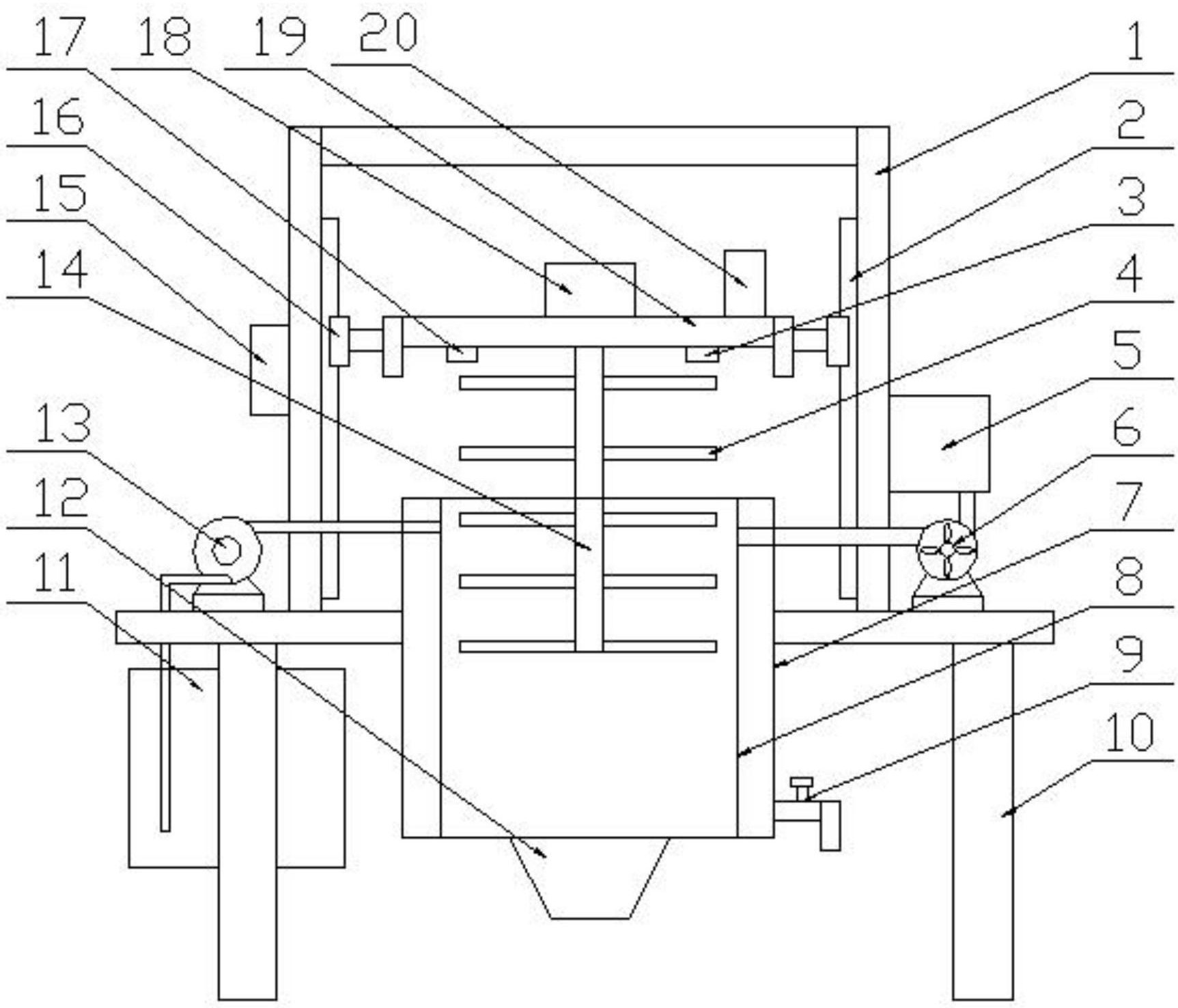 本实用新型公开了一种羽绒清洗消毒机,包括支撑架、消毒机主体和消毒装置盖板,所述消毒机主体上端设有支撑架,所述支撑架一侧表面设有处理器,所述支撑架另一侧表面设有空气加热器,所述空气加热器下端设有风机,所述支撑架内部两侧表面均设有滑轨,所述滑轨表面设有滑动电机,所述滑动电机一侧设有消毒装置盖板,所述消毒装置盖板上端设有旋转电机,所述旋转电机一侧设有报警器,所述消毒装置盖板下端一侧设有紫外线杀菌灯,所述紫外线杀菌灯一侧设有湿度传感器,所述湿度传感器一侧设有旋转轴,通过设置了搅拌杆,能够将羽绒放入消毒装置内胆中并通过搅拌杆对羽绒进行搅拌清洗,提高了清洁效率。