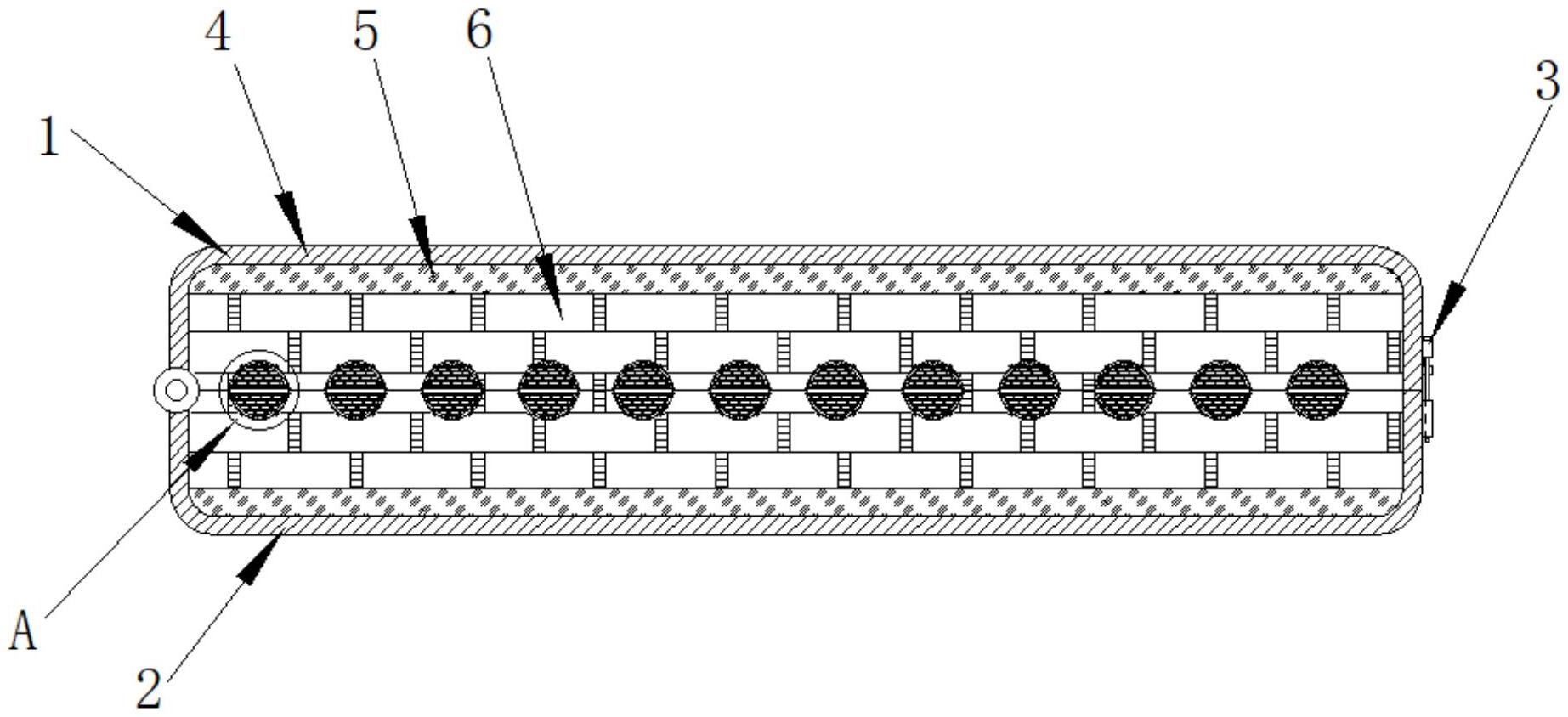 本实用新型涉及一种抗菌型乳胶床垫。该床垫包括有铰接设置的上层床垫与下层床垫,上层床垫侧面与下层床垫侧面之间设置有限位部件,上层床垫由上至下依次设置有套体层,抗菌层以及基体层,下层床垫由上至下依次设置有基体层,抗菌层以及套体层,上层床垫的基体层下表面开设有半圆状的上凹槽,下层床垫的基体层上表面开设有半圆状的下凹槽,上凹槽与下凹槽配合形成管状空腔,管状空腔内设置有除螨管,该乳胶床垫利用上层床垫与下层床垫铰接的结构设置,对床垫内部的除螨包进行更换,从而改善长时间使用后的床垫内部环境,防止螨虫细菌滋生,提高床垫的除螨除菌效果,该装置能够运用于工业生产,具有很强的实用性。