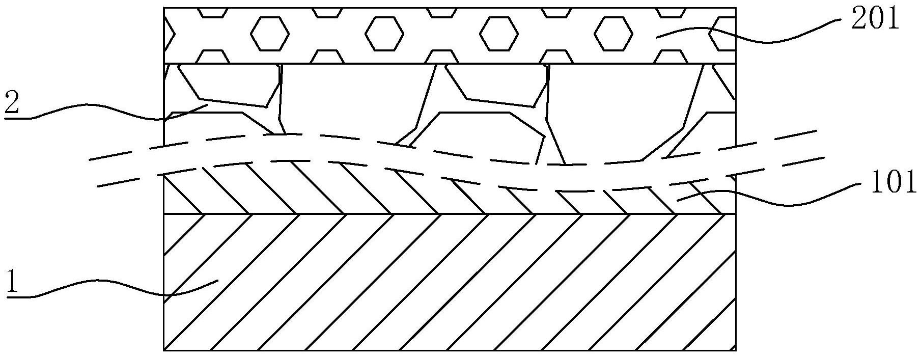 本实用新型公开了一种易去污材料的绒面沙发布,涉及沙发布技术领域。旨在解决普通的易去污沙发布大多一体成型,其具有一定的抗污渍能力却必须在受污后通过整体清洗的方式以保持布料的洁净,而其整体清洗后不便于立即使用的技术问题,其技术方案要点是设置隔离层和带有连接件的贴合层、基料层,通过连接件使贴合层与基料层连接为一个整体,贴合层可吸收部分油水污渍物,隔离层可减少污渍物的进一步下渗,当沙发布需要清洗时,操作人员可将贴合层快速拆卸以清洗,并可通过在基料层上安装备用的贴合层以保障沙发布的正常使用,达到了沙发布受污渍部便于拆卸及更换的效果。