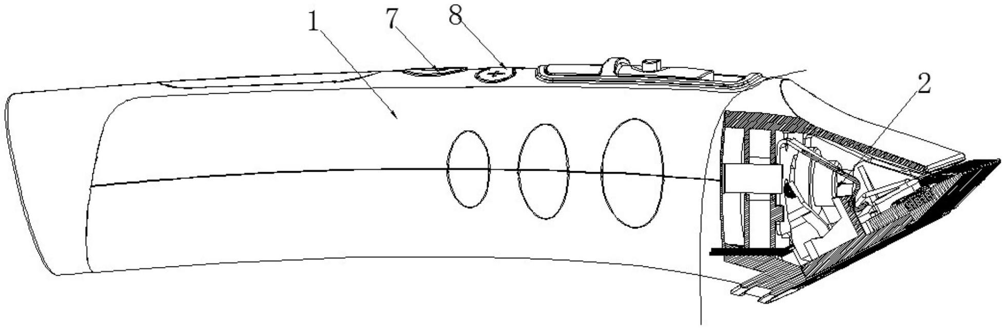 本实用新型公开了一种电推剪刀头降温的装置,包括机身本体,机身本体的一端设置有刀头本体;刀头本体包括设置在机身本体一端的定刀组件,定刀组件的顶部一端设置有动刀组件,定刀组件的顶部另一端设置有压紧组件,定刀组件与动刀组件之间设置有降温组件,且降温组件与机身本体连接。有益效果:本实用新型可以使定刀片外表面的温度保持在人体舒适的温度,促使刀头使用寿命加长,降低刀头的使用成本。