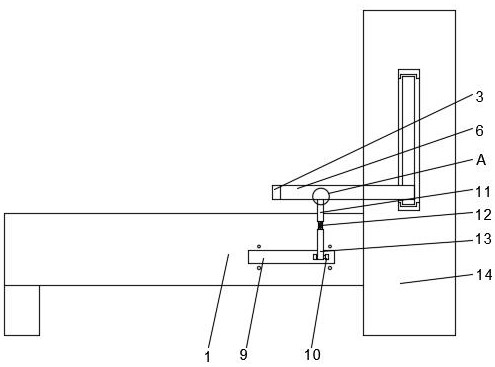 本实用新型提供一种模块化家居床,属于家具床领域,模块化家居床,包括床体和与床体螺栓连接的床头,床头的两侧开设有空腔,空腔内的上下两端均开设有滑槽,空腔内还设置有与滑槽配合滑动的桌板组件,床体的一侧开设有凹槽,凹槽内设置有可收纳于凹槽内并用于支撑桌板组件的支撑机构,桌板组件包括设置于滑槽内的连接板和桌板,桌板与连接板之间转动连接有转轴,桌板设置在靠近腔口的一侧;本实用新型可以通过桌板从槽腔内拉出,使其再次通过转轴转动至与桌面平行,然后再使第一连接杆拉出与凹槽形成90°角,接着使第二连接杆通过铰接轴向上翻折,最后转动套杆通直至与桌板底部的连接槽螺纹连接,即可使桌板进行固定,防止晃动和倾斜。
