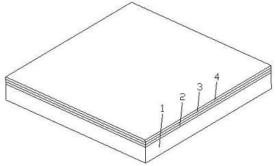 一种建筑装饰用PVC板,包括铝合金基层板1、改性PVC基膜2、全氟印刷膜3和PVDF功能表膜4。所述铝合金基层板1置最下层,改性PVC基膜2置于所述铝合金基层板1上,全氟印刷膜覆3在改性PVC基膜2上,PVDF功能表膜4覆在全氟印刷膜3上;所述PVC板四周有折边。本实用新型将多层耐候性强的薄膜覆盖在铝合金基层板上,大大提高了PVC装饰用板材的耐候性,本实用新型采用贴膜工艺和自动化钣金生产工艺开发的建筑装饰材料具有生产效率高、绿色环保、整体性以及耐候性强、各物理性能良好的特点,是未来替代传统喷涂铝单板较好的选择。