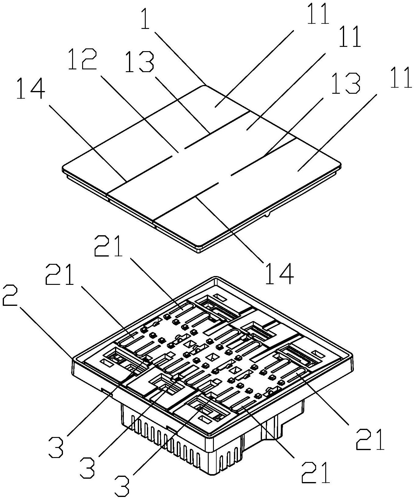 本实用新型提供一种用于按键开关上的联体按键面板,包括一体成型的面板主体,面板主体上设有若干个左右排列的按键部,相邻按键部之间设有上间隙与下间隙,上间隙与下间隙之间形成有用于将相邻按键部相互联接的联接部。本实用新型提供的一种用于按键开关上的联体按键面板,能够由一个联体按键面板实现来实现多位开关,即简化了多位按键的复杂生产工艺,降低了成本,还增强了按键面板的整体感,使得本申请更加迎合大众需求的现代美。