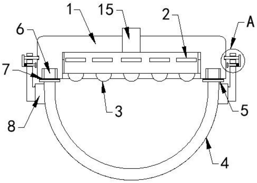 本实用新型公开了一种室外LED灯灯头的防水装置,包括安装板,所述安装板的底部设有安装槽,所述安装槽内设有电路板,所述电路板的下方设有灯珠,所述安装板的下方设有灯罩,所述灯罩靠近安装板的一侧固定连接有限位盘,所述限位盘远离灯罩的一侧固定连接有卡环,所述限位盘靠近卡环的一侧外壁上固定连接有密封垫,所述安装板的一侧设有与卡环对应的卡槽,所述灯罩的外侧壁上均固定连接有多个连接块,多个所述连接块的外侧壁上均固定连接有支撑杆,所述支撑杆上滑动插设有定位杆,本实用新型通过卡接机构带动压缩密封圈,实现对的密封固定,有利于提高LED灯的紧密性,提高LED灯的防水效果,且灯罩拆装方便,易于进行清洗。
