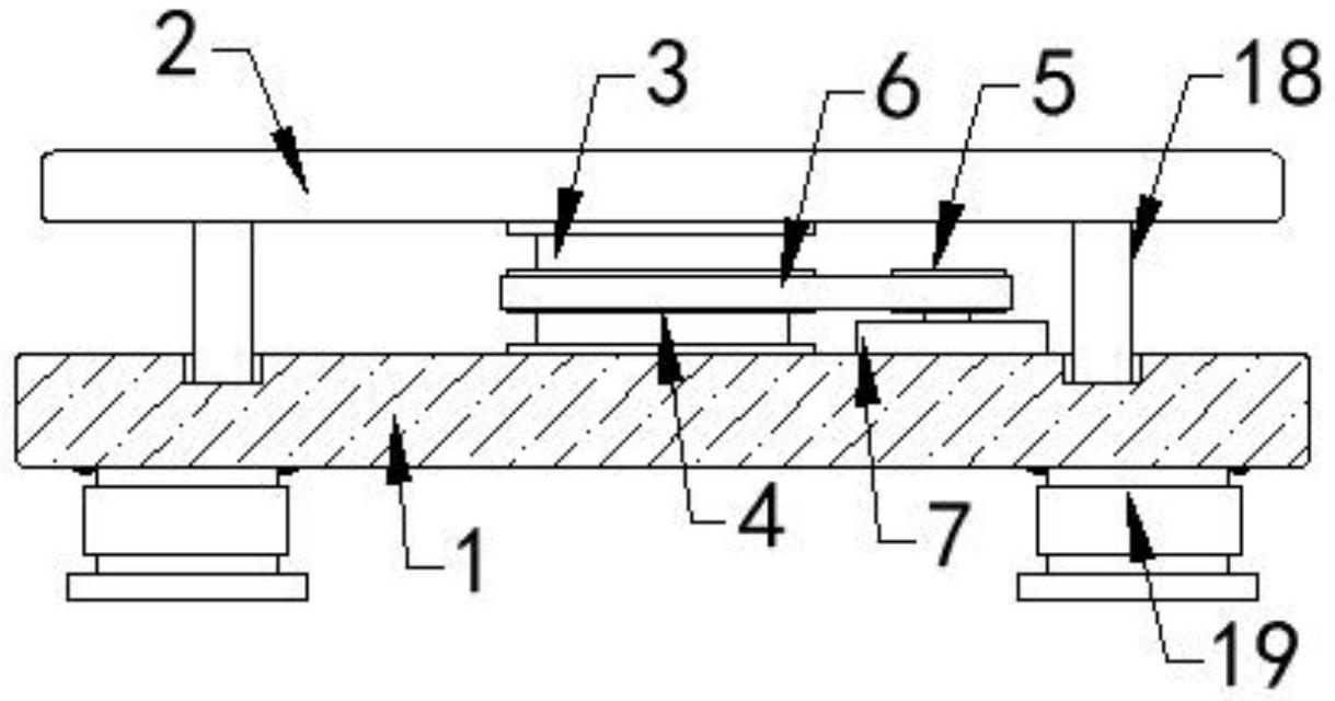 本实用新型公开了一种用于生产发光二极管的夹具,包括基座,所述基座的上方设有置物盘,所述置物盘的底部固定连接有转动柱,所述转动柱的底部与基座转动连接,所述转动柱上固定套接有第一皮带轮,所述第一皮带轮的一侧设有第二皮带轮,所述第一皮带轮与第二皮带轮之间通过皮带连接,所述基座的顶部固定连接有电机,所述电机的输出端固定插设在第二皮带轮内,所述置物盘的顶部固定连接有环形矩阵设置的多个放置块,多个所述放置块内均设有放置口,所述放置块上设有夹持机构,所述夹持机构包括固定框与螺纹杆,本实用新型对二极管的固定结构简单,操作方便,且通过电机的联动作业能够同时对多个二极管进行点胶作业提高生产效率。