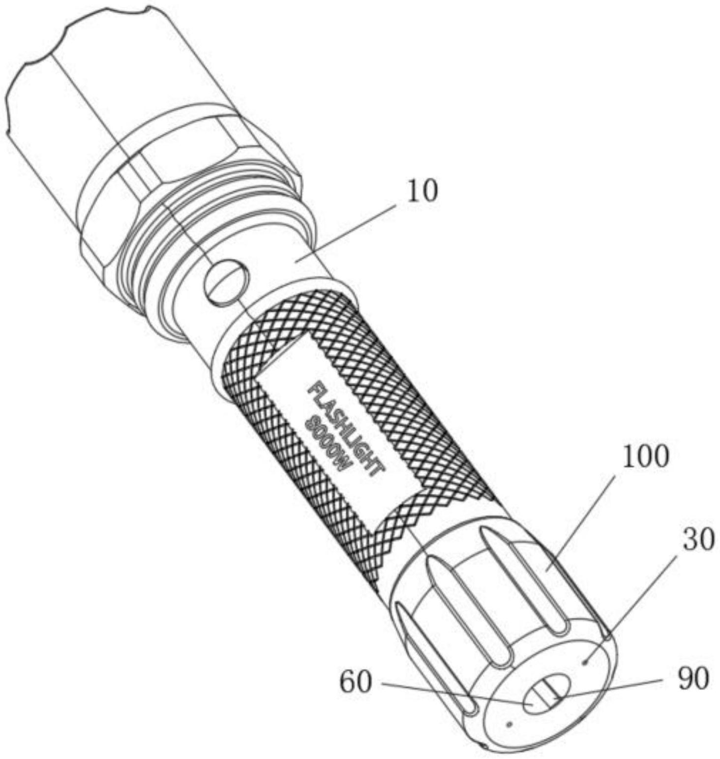 本实用新型公开了一种新型防爆手电筒,包括带有电池舱的手电筒主体以及配装在手电筒主体底部的电池舱盖,所述电池舱盖的中部设有与电池舱连通的腔体,所述腔体的底部通过螺纹链接有底座,而在腔体的侧部则设有至少一个泄压槽,所述泄压槽一端与腔体连通,另一端则与电池舱盖的底部连通,所述底座的顶部设有堵头,其中,所述堵头与底座之间则设有复位弹簧,所述堵头处于泄压槽的上方。本实用新型因过充或过放而排放的气体达到一定程度后可通过向下挤压堵头而通过泄压槽排除,极大程度上地平衡了电池舱内的气压,提高了防爆手电筒的使用安全性。