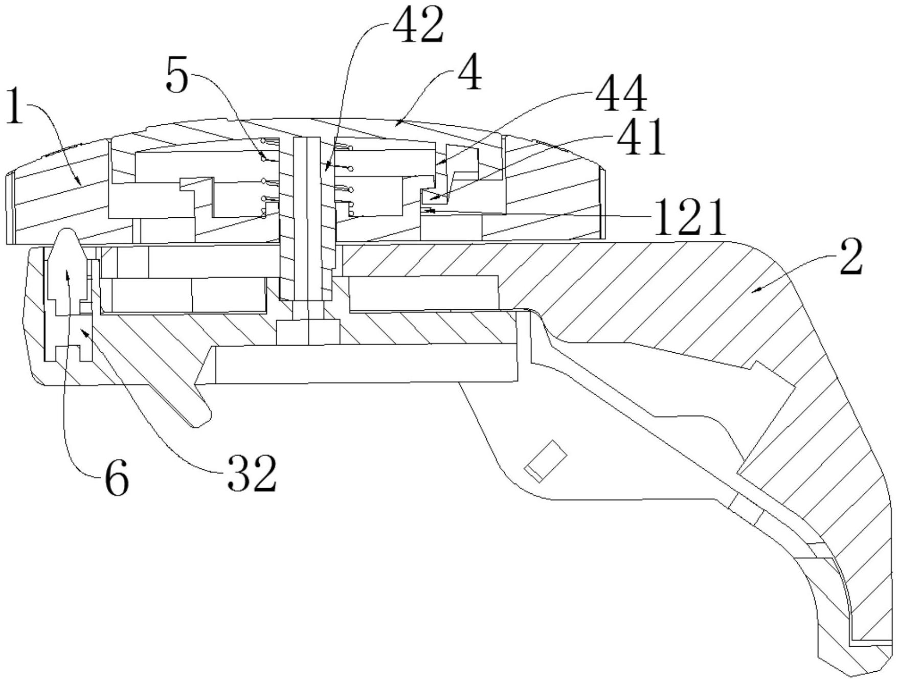 本实用新型提供了一种同方向旋转实现伸出和缩回的梳套结构及毛发修剪器,包括旋钮、梳套、固定座和固定盖,旋钮设有凸柱和起伏滑轨,起伏滑轨至少间隔设有两个凸出部,固定盖设有抵接柱,梳套设有至少两个适于与凸柱滑动配合的长条槽;凸柱与长条槽配合时抵接柱与凸出部脱离,抵接柱与凸出部配合时凸柱与长条槽脱离。利用固定盖上的抵接柱与旋钮上的起伏滑轨的至少两个凸出部切换配合,实现旋钮上的凸柱与梳套上的至少两个长条槽切换配合,从而实现同方向旋转旋钮来完成梳套的伸出和缩回动作,且该结构不分方向,即可以在顺时针旋转过程中实现梳套的伸出和缩回,也可以在逆时针旋转过程中实现梳套的伸出和缩回,调节方式多样化。