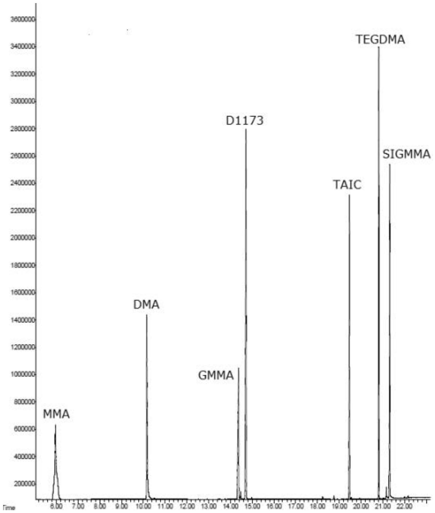 本发明涉及分析检测技术领域,提供了一种检测角膜接触镜多组分可沥滤物含量的方法,本发明采用外标法对多组分可沥滤物进行定性和定量,首先对对照品溶液进行检测,确定各个保留时间对应的可沥滤物种类,配制多组分混合线性溶液,得到可沥滤物浓度以及峰面积之间的关系曲线(即标准曲线),最后对供试品溶液进行检测,结合所得谱图、对照品的保留时间以及标准曲线,利用外标法对供试品溶液中的可沥滤物组分进行定性和定量。本发明提供的方法可以做到同时检测多种可沥滤物,检出效率高,精密度和准确度高,操作简便,灵敏度高,适用于快速分析角膜接触镜多组分可沥滤物的组成及含量。