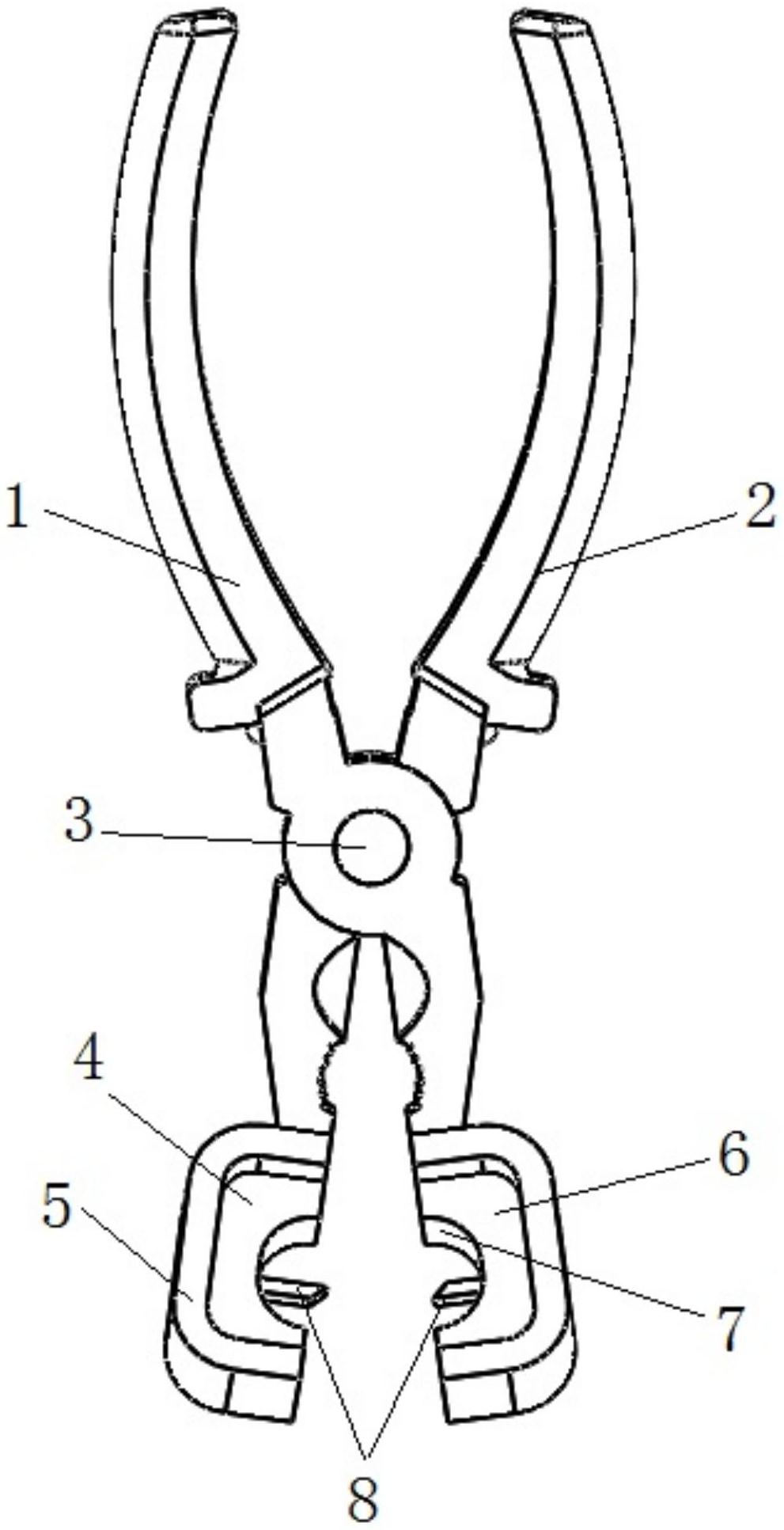 本实用新型涉及一种铅酸蓄电池跨桥焊接工具,包括第一钳体和第二钳体,第一钳体和第二钳体通过连接轴连接,第一钳体的钳头前端连接有第一防火台,第二钳体的钳头前端连接有第二防火台,第一防火台和第二防火台相对设置,第一防火台和第二防火台均开设有跨桥放置口,跨桥放置口内连接有对插台阶。本实用新型提供了一种铅酸蓄电池跨桥焊接工具,保证了跨桥焊接相融的深度和结合的截面积,避免了焊接漏料造成电池短路的问题,提高了电池的大电流放电性能及产品的成品率。