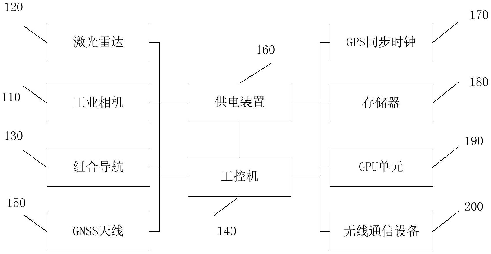 本实用新型公开了一种高精度地图数据采集装备,包括激光雷达、工业相机、组合导航、GNSS天线、GPS授时同步单元等,利用安装平台将各传感器安装在平台上,激光雷达与平台成预定角度安装,工业相机朝车头方向与激光雷达保持固定角度;平台上安装组合导航、GNSS天线;激光雷达、工业相机、组合导航、天线的位置、角度固定,并标定各设备之前的参数,激光雷达位最顶端,可以自由转动可以采集周边200米范围内的点云数据。通过使用成本较低的各类传感器及程序代替昂贵集成车载移动测量系统,降低高精度采集车的成本,并实现自动化采集。