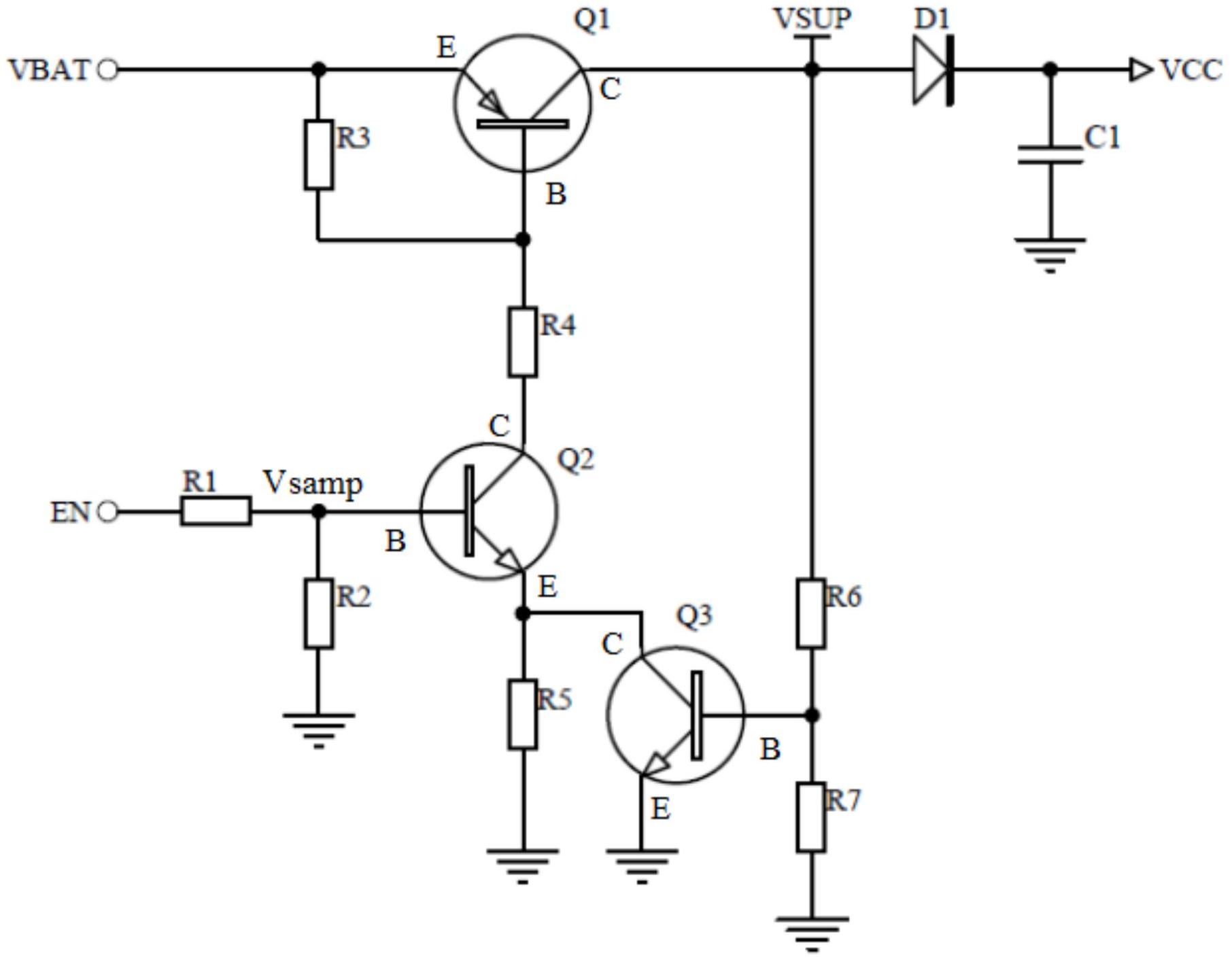 本实用新型涉及一种车载逆变器的辅助电源电路,包括:分压电路,其一端形成该辅助电源电路的使能信号输入端,而另一端接地,该分压电路具有一分压采样端;开关器件,其第二连接端形成该辅助电源电路的电压输入端,第一连接端用于该辅助电源电路的电压输出;控制器件,其控制端连接至所述分压采样端,第一连接端经由第一限流电阻连接至所述开关器件的第二连接端和控制端,第二连接端连接至使能信号电压回差调节电阻的其中一端,而该使能信号电压回差调节电阻的另一端接地;钳位器件,其第一连接端连接至所述控制器件的第二连接端,第二连接端接地,控制端经由第二限流电阻连接至所述开关器件的第一连接端。本实用新型还涉及一种车载逆变器。