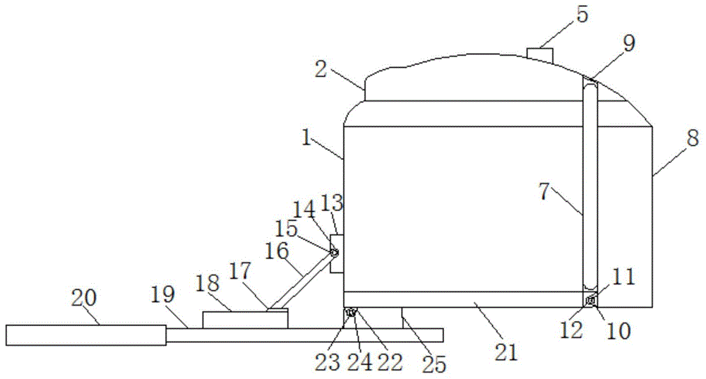 本发明涉及冰箱技术领域,且公开了一种铰接式车载冰箱,包括箱体,所述箱体的上表面固定连接有上壳盖,所述上壳盖上表面的左侧固定连接有控制板,所述上壳盖上表面的中部开设有散热孔,所述上壳盖上表面的右侧固定连接有拉把,所述箱体顶部的右侧开设有凹槽,所述箱体的右侧磁力连接有密封圈,所述密封圈远离箱体的一侧固定连接有箱门,所述箱门的上表面固定连接有握把,所述箱门的底部固定连接有第一活动片,所述第一活动片远离箱门的一侧固定连接有第一转轴,所述第一转轴的外表面套接有第一套管,所述箱体左侧的底部固定连接有第一固定块。该一种铰接式车载冰箱,具备放置简便、开取容易和占用空间少等优点。