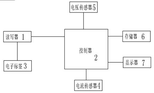 本实用新型涉及一种基于RFID数据识别技术的充电桩检测装置,包括:读写器,所述的读写器连接有控制器,读写器读取设置在充电桩的电子标签内的数据信息,并将读取到的数据信息传送至控制器;所述的控制器还连接有电流传感器和电压传感器,电流传感器采集充电桩检测状态时的电流值,电压传感器采集充电桩检测状态时的电压值,电流传感器将采集到的电流值发送至控制器,电压传感器将采集到的电压值发送至控制器;所述的控制器还连接有存储器和显示器。