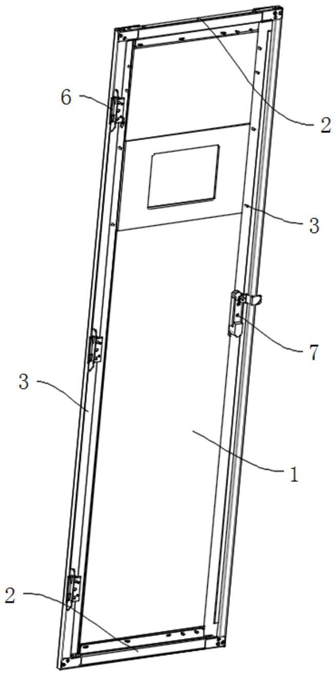 本实用新型提供了一种机柜玻璃门及机柜,属于电气设备技术领域,包括玻璃板和门框;门框围设于玻璃板的四周;门框包括两个端边框和两个侧边框,两个端边框沿第一方向间隔分布,两个侧边框沿第二方向间隔分布;端边框的内侧面设有限位结构,侧边框的背面设有粘接条;玻璃板的两端分别插接于限位结构内,玻璃板的正面两侧分别粘接于粘接条上。本实用新型的限位结构用于沿第一方向及第三方向固定玻璃板、粘接条用于沿第二方向及第三方向固定玻璃板,限位结构及粘接条配合,以使玻璃板被限位固定。本实用新型利用门框的自身结构固定玻璃板,省略了钣金件,降低了机柜的制作成本,且简化了装配操作。