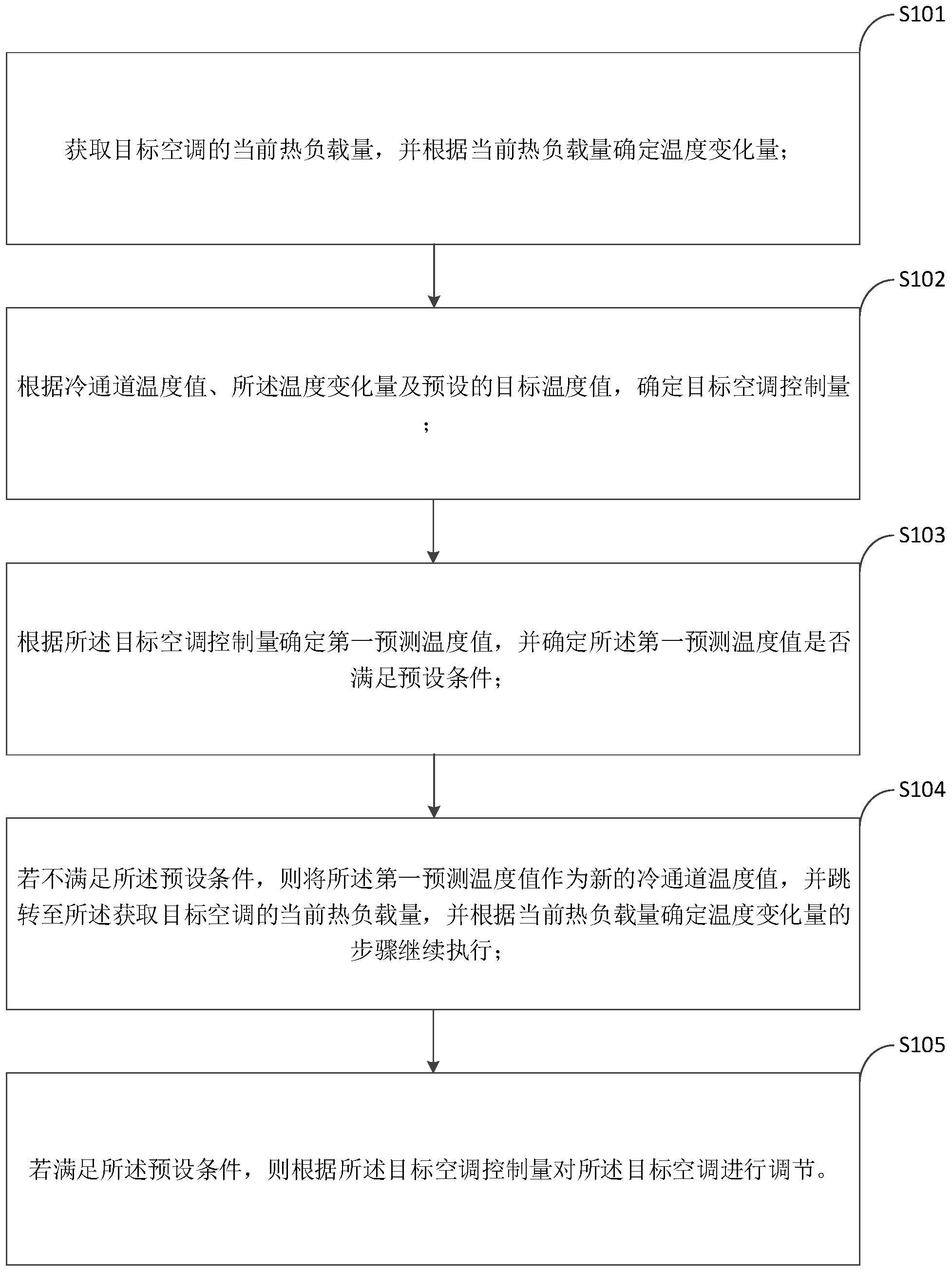 本发明适用于空调控制技术领域,提供了一种空调控制方法、控制终端及计算机可读存储介质,上述方法包括:获取目标空调的当前热负载量,并根据当前热负载量确定温度变化量;根据冷通道温度值、温度变化量及预设的目标温度值,确定目标空调控制量;根据目标空调控制量确定第一预测温度值,并确定第一预测温度值是否满足预设条件;若不满足预设条件,则将第一预测温度值作为新的冷通道温度值,并跳转至获取目标空调的当前热负载量,并根据当前热负载量确定温度变化量的步骤继续执行。本发明在热负载的变化量影响到环境温度之前,先期根据目标空调的当前热负载量提前对空调参数进行优化调节,可实现环境温度的平稳、快速、准确的调节,机房温度波动小。