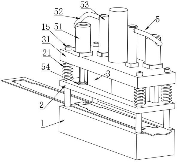 本发明提供一种雨刮臂组合冲压模具,属于金属板成型模具技术领域,包括:下模块及上模组。下模块顶面具有下料槽,下料槽的底部具有贯穿下模块底部的成型孔;上模组设于下模块的上方,上模组包括平行于下模块的压板,压板垂直穿设有下料模块,其下端的外轮廓与下料槽用于形成钣金件,下料模块设于一安装板的底部,安装板底部与压板的顶部之间设有弹性件,下料模块的底部设有成型模块,成型模块沿垂直于下模块顶面的方向移动,成型模块与成型孔用于将钣金件冲压形成雨刮臂毛坯件。本方案整体结构简单,且具有较高的冲压效率。