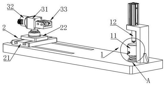 本申请提供一种雨刮臂扭曲角度检测装置,包括:夹持机构、位移机构及检测机构。夹持机构包括升降台,升降台的上方垂直设有压杆。位移机构包括底板及滑动板,底板沿着位移机构与夹持机构之间的连线方向移动设置,滑动板滑动设于底板上,滑动方向垂直于底板的移动方向。检测机构包括转动设于滑动板顶面的旋转座,旋转座的转动轴线垂直于滑动板,旋转座一侧设有编码器,编码器的主轴连接有连接座,连接座相对编码器设于旋转座的另一侧,连接座与编码器的主轴一同转动。可适应检测不同型号雨刮臂的扭曲角度,具有更好的实用性。