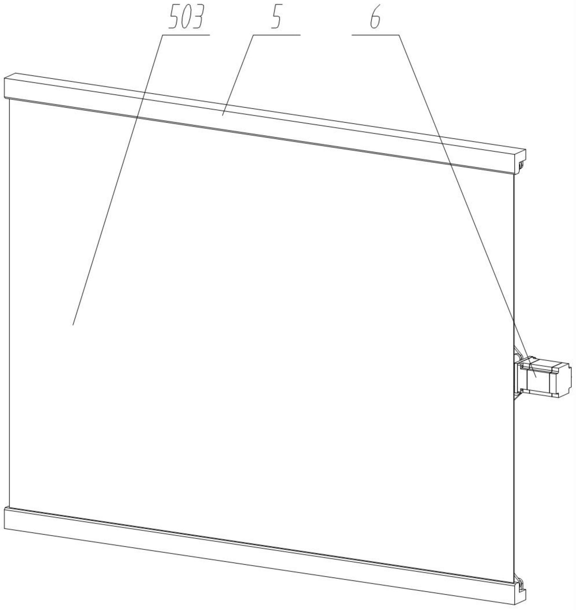 本发明公开了一种智慧教育校园用AI教育设备,涉及教学办公技术领域,解决了现有的投影幕布在使用中容易受到风力的影响造成幕布晃动,影响投影效果,同时,在使用中投影幕布只能上下展开,幕布为横屏设置,当需要竖屏投放时,难以满足使用要求的问题,包括安装底座;所述安装底座的右端面固定连接有一组旋转驱动件;位于所述伸缩安装座下部的两对伸缩支撑件共同连接有一组伸缩部件;两组伸缩部件为对称排布。本发明实现了教学幕布展开或者折叠,展开时,方便使用,折叠时减少空间占用,防止教学幕布沾染灰尘,同时通过对教学幕布的双向支撑,更好的保证教学幕布的稳定性,有效减少受到风力等影响造成的幕布摆动。