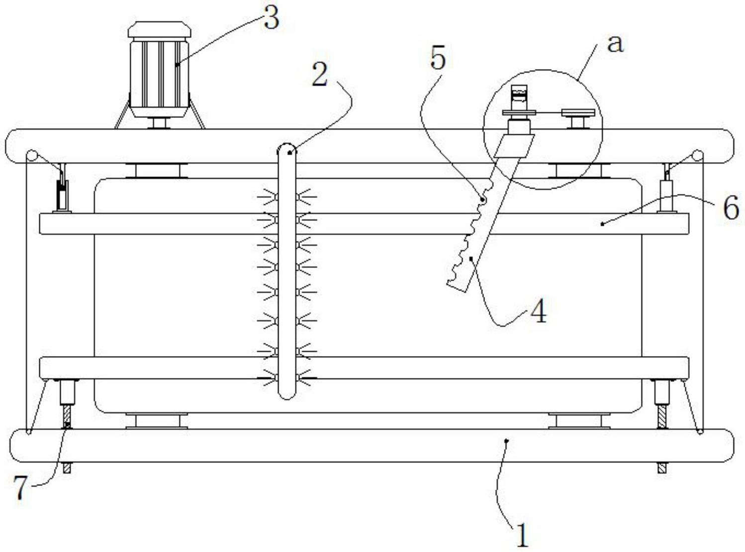 本实用新型公开了一种可除尘的新能源汽车电池管理用输送装置,通过运输装置工作带动电池进行移动;刷子,固定在所述运输装置的上方,所述运输装置的后侧左方设置有使运输装置运行的电机;包括:通管,设置在所述运输装置的上方,所述通管的后侧设置有对灰尘进行吸附的风扇;螺纹杆,轴承连接在所述运输装置的前方左侧内部,所述螺纹杆的一端螺纹连接有对电池进进行限位的限位板;连接杆,固定在所述运输装置的后方左侧内部。该可除尘的新能源汽车电池管理用输送装置,安装有刷子和风扇,通过风扇的转动和刷子的设置共同实现对灰尘的处理,避免灰尘掉落在电池的内部,防止电池出现异响,不需要人工进行处理,减少时间的消耗。