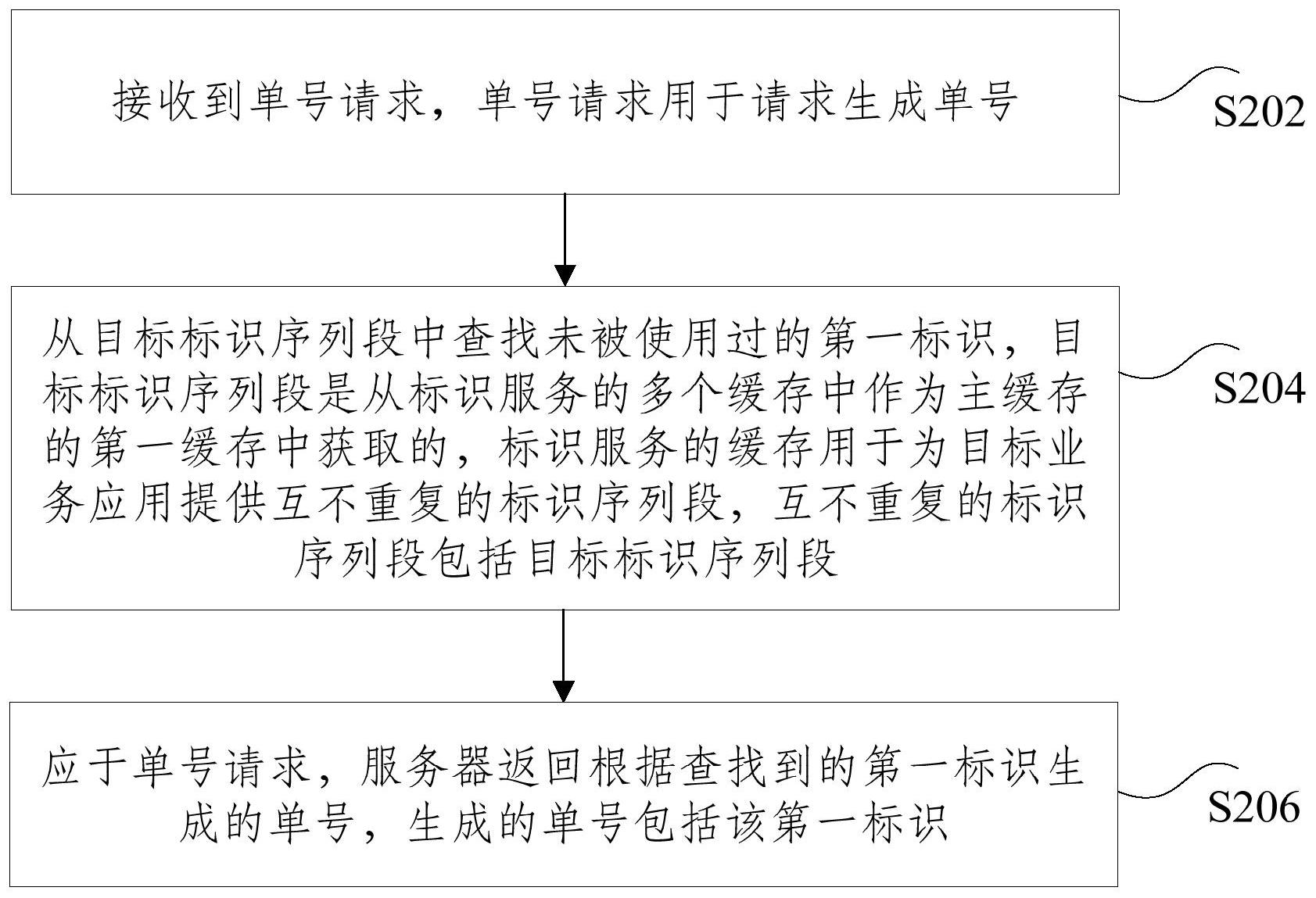 本申请公开了一种标识的处理方法和装置、存储介质、电子装置。其中,该方法包括:接收到单号请求,单号请求用于请求生成单号;从目标标识序列段中查找未被使用过的第一标识,目标标识序列段是从标识服务的多个缓存中作为主缓存的第一缓存中获取的,标识服务的缓存用于为目标业务应用提供互不重复的标识序列段,互不重复的标识序列段包括目标标识序列段;响应于单号请求,返回根据查找到的第一标识生成的单号。本申请解决了相关技术中生成单号的方式不能保证全局唯一的技术问题。