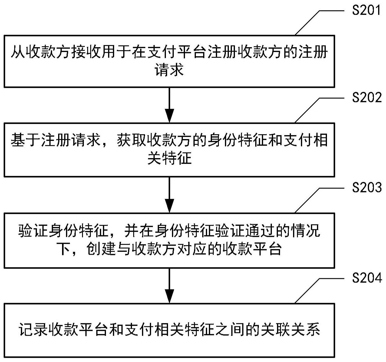 本公开提供了一种应用于支付平台的数据处理方法,包括:从收款方接收用于在所述支付平台注册收款方的注册请求;基于所述注册请求,获取所述收款方的身份特征和支付相关特征;验证所述身份特征,并在所述身份特征验证通过的情况下,创建与所述收款方对应的收款平台;以及记录所述收款平台和所述支付相关特征之间的关联关系。本公开还提供了一种支付平台的数据处理装置、计算机系统和计算机可读存储介质。