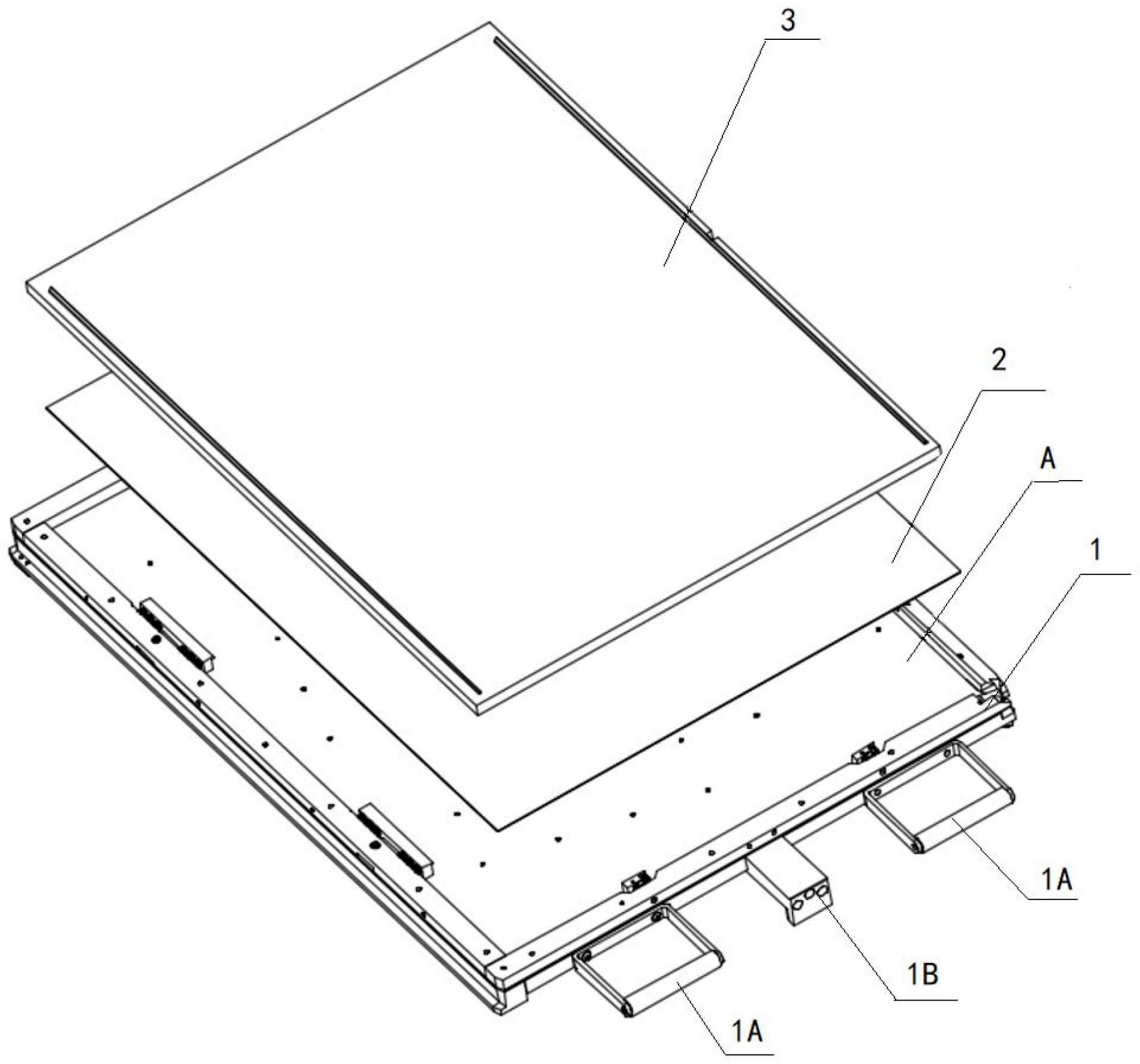 本发明提供了一种模切机的上模切板,所述上模切板包括框体组件、垫板和模切刀板,垫板嵌入在框体组件一面的凹槽中,模切刀板覆盖安装在垫板上方并与框体组件固定连接,使用时将上模切板上下翻转,从而使得模切刀板所在的一面向下并将上模切板安装至模切机的机架上,用于对纸张进行模切。本发明的优点在于:垫板用于消除因框体组件和模切刀板表面的高度误差所造成的模切刀板施力不均匀的现象,确保了模切刀板表面平整度保持一致,使得更换模切刀板简单快捷。